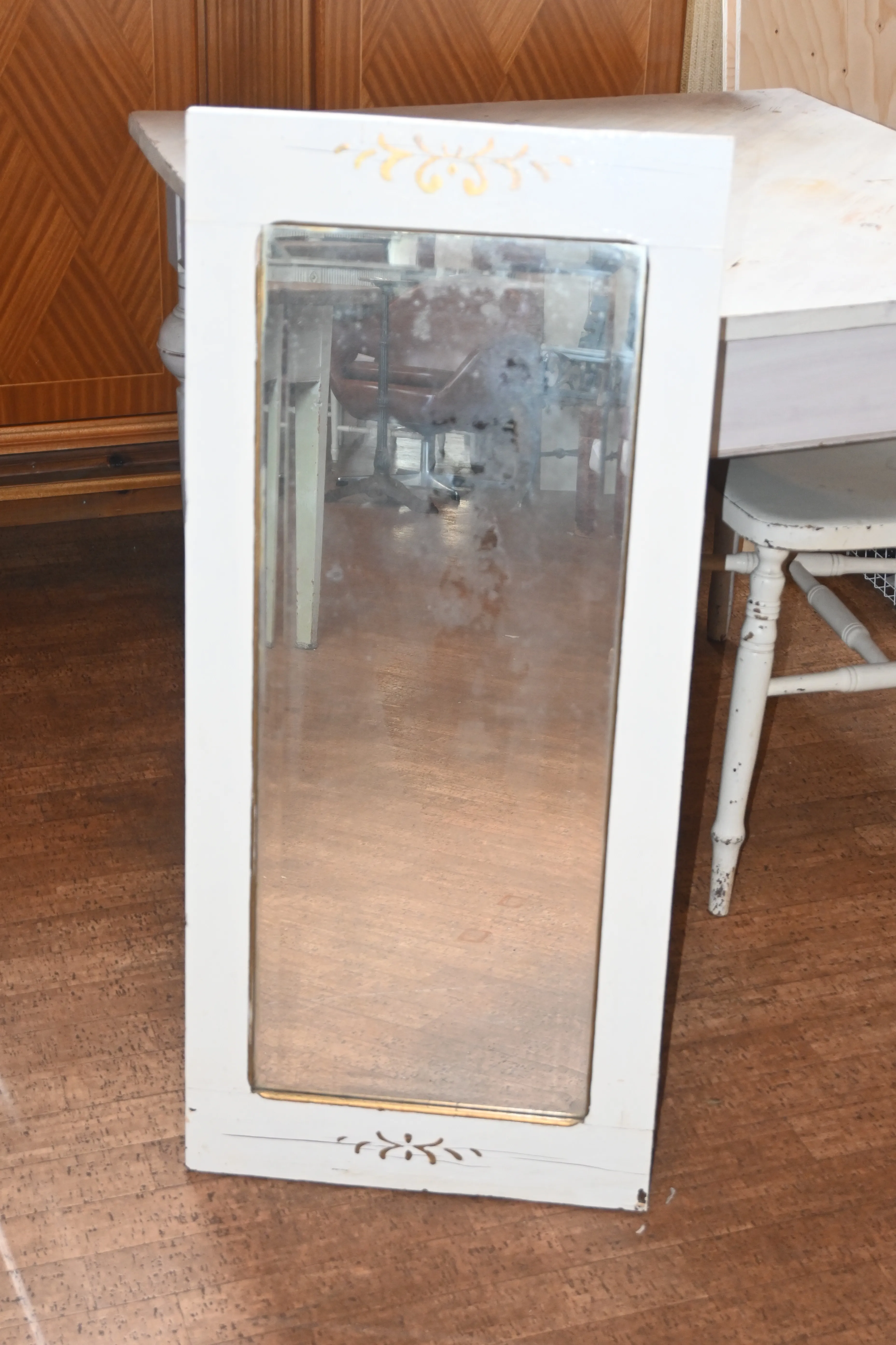 533. Bord med svarvade ben + stol + spegel H.74.5cm B/L=86x86cm