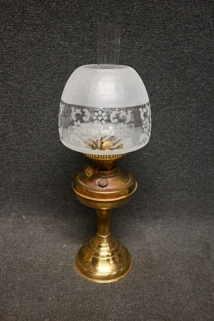 Bordsfotogen i mässing med etsad kupa sekelsk 18/1900.tal (spräckt) H:56cm