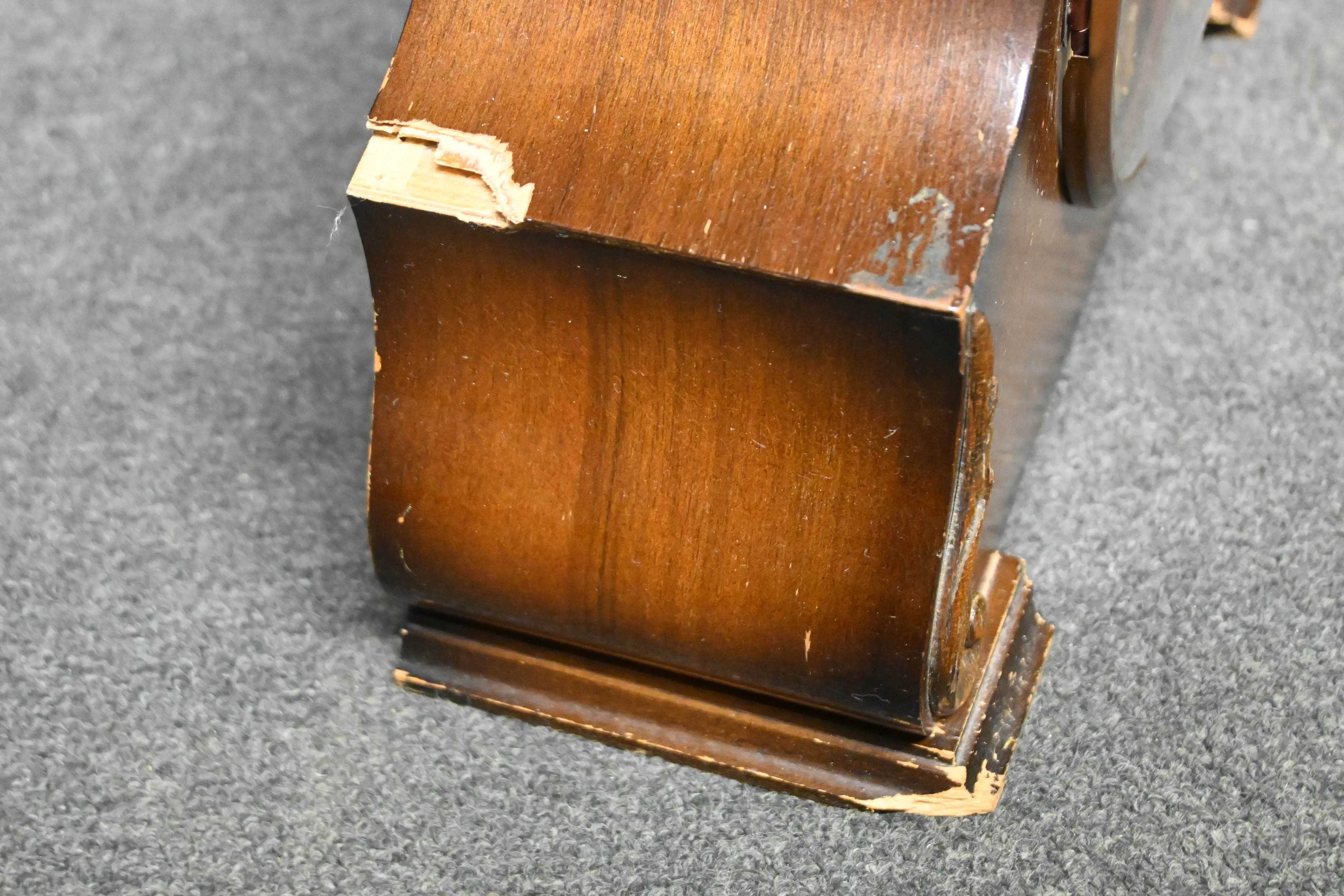 79. Bordsklocka "Smiths England" (skador förekommer, fungerar), guldpendyl (färgslitage) Nycklar saknas