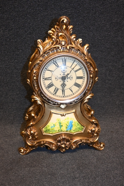 124. Bordspendyl i konstmaterial med batteriverk H.37cm (ej test körd, liten skada på lock)