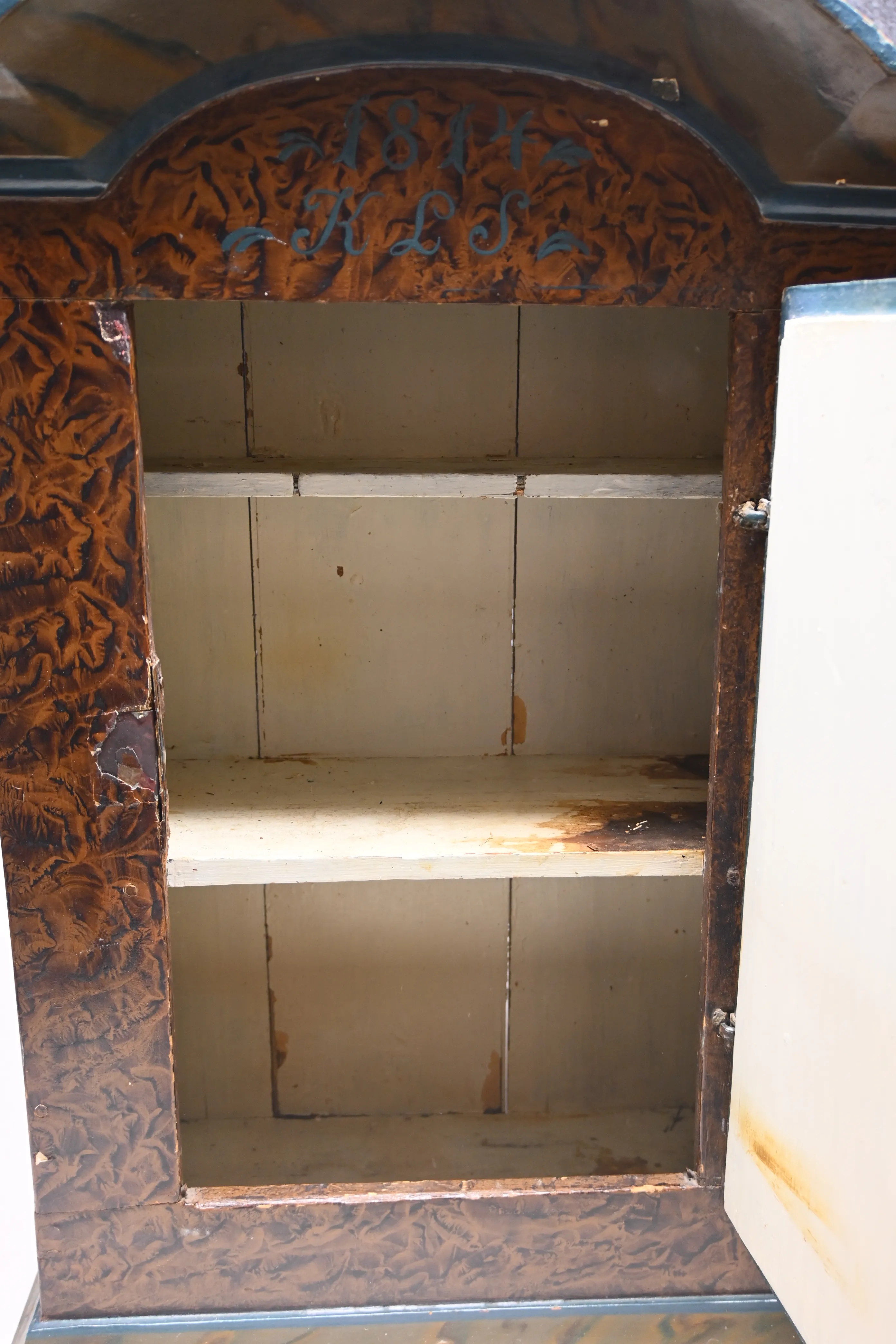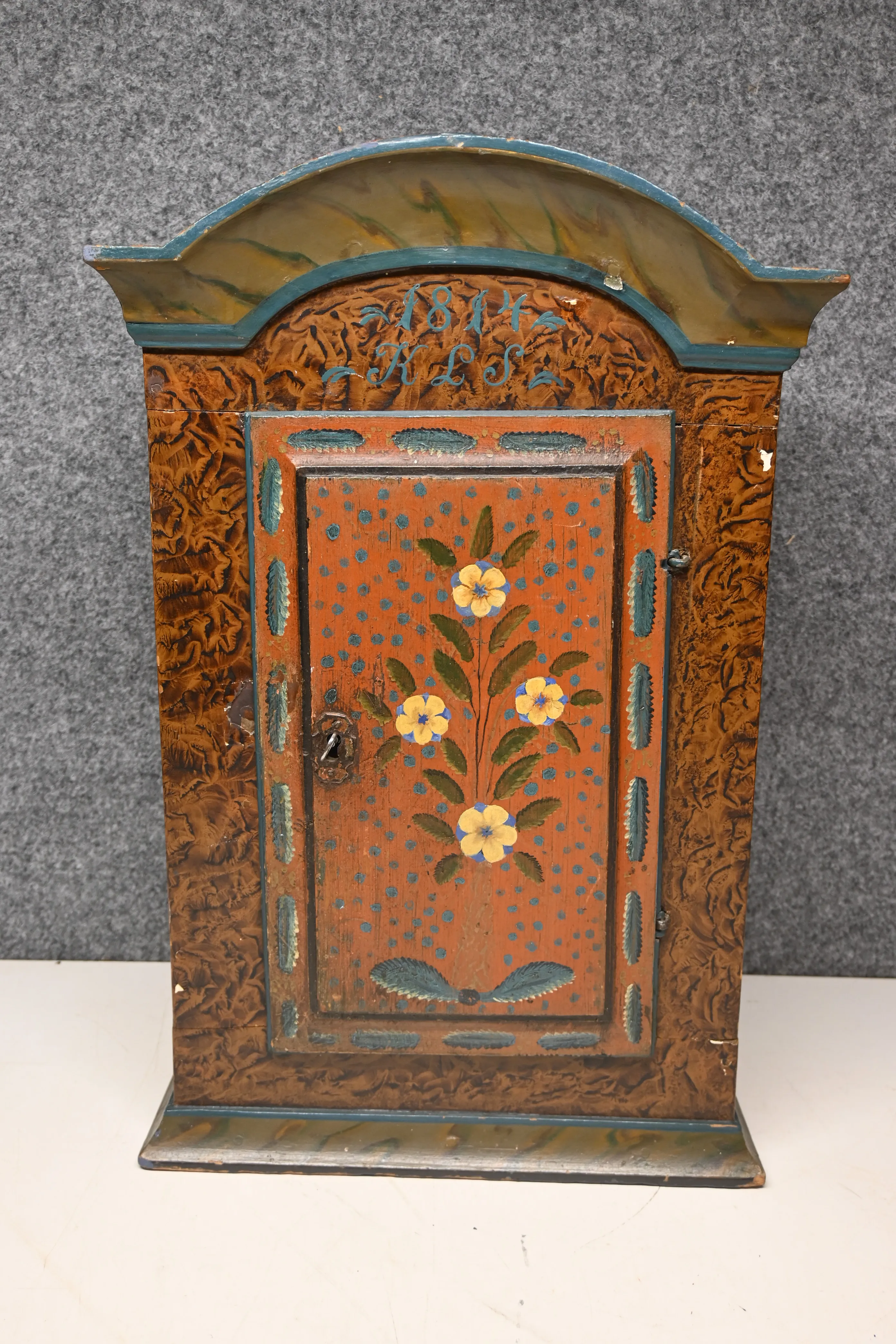 398. Brännvinssskåp dat 1814 med målning (nyare lås) H.68cm B.45cm Dj.22.5cm