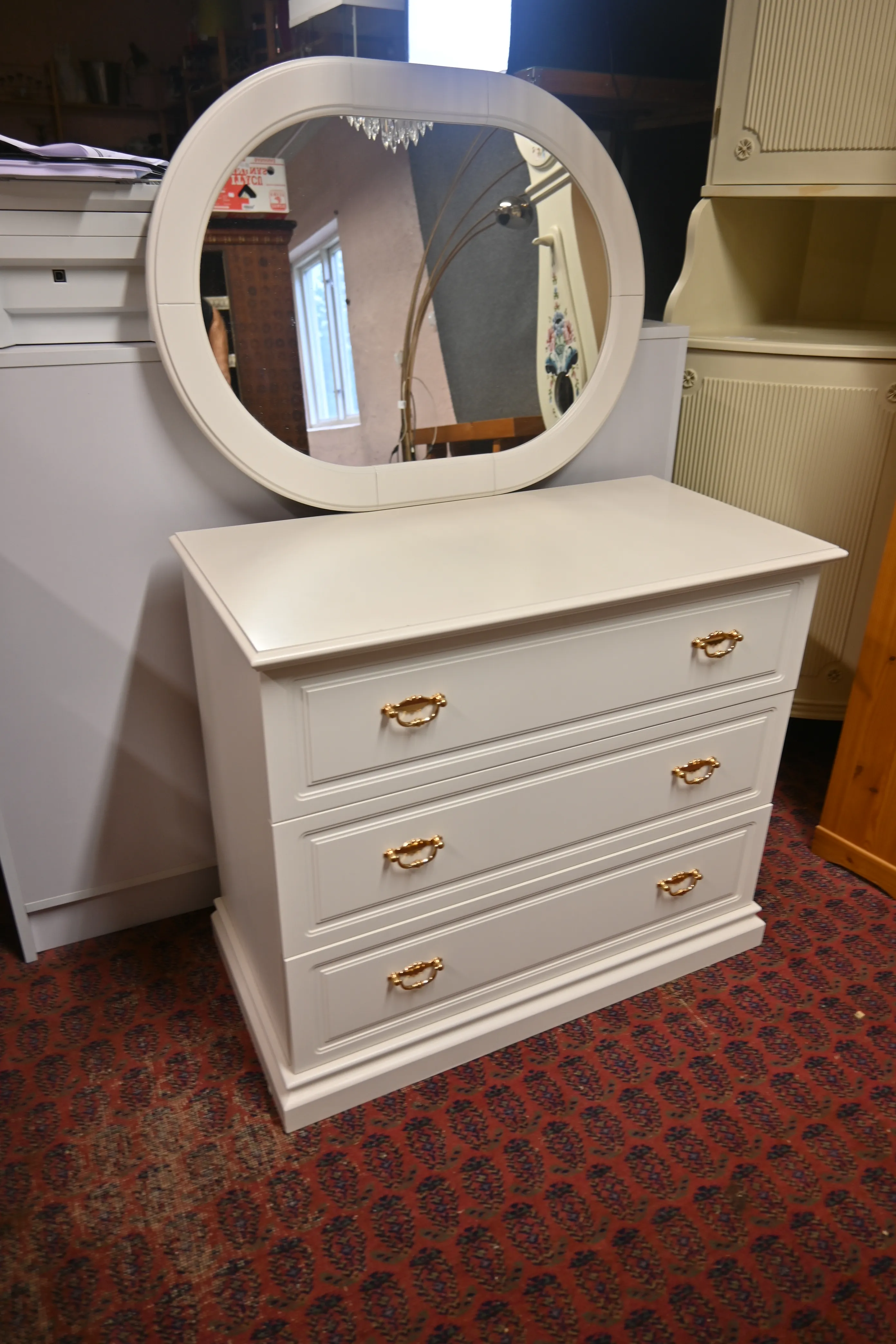 Byrå med spegel B.83cm D.42cm H. 73cm, bruksskick