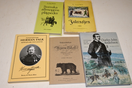 61. Böcker 5st, L.LLoyd Svenska allmogens plägseder 1979, Jaktnöjen 1946, Herman Falk, Charles Jon Andersson (1 m slitage på bokomslag)