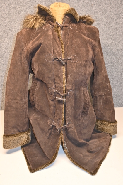 129. Skinnjacka strl 38 (bruksslitage), handväskor