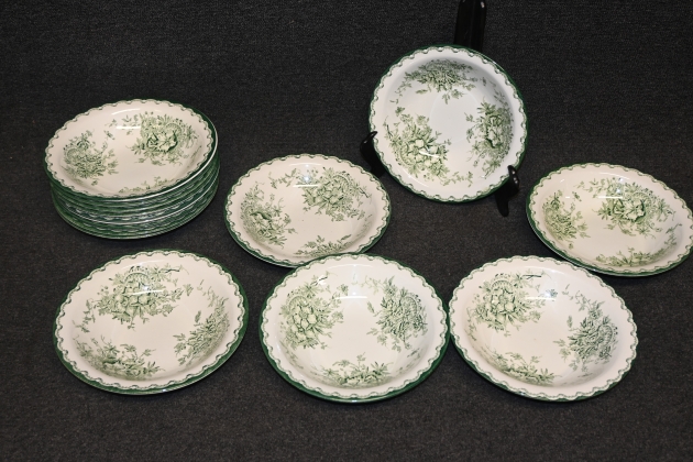 121. Djupa tallrikar, Rörstrand "Grön Anna" 15st D.20cm