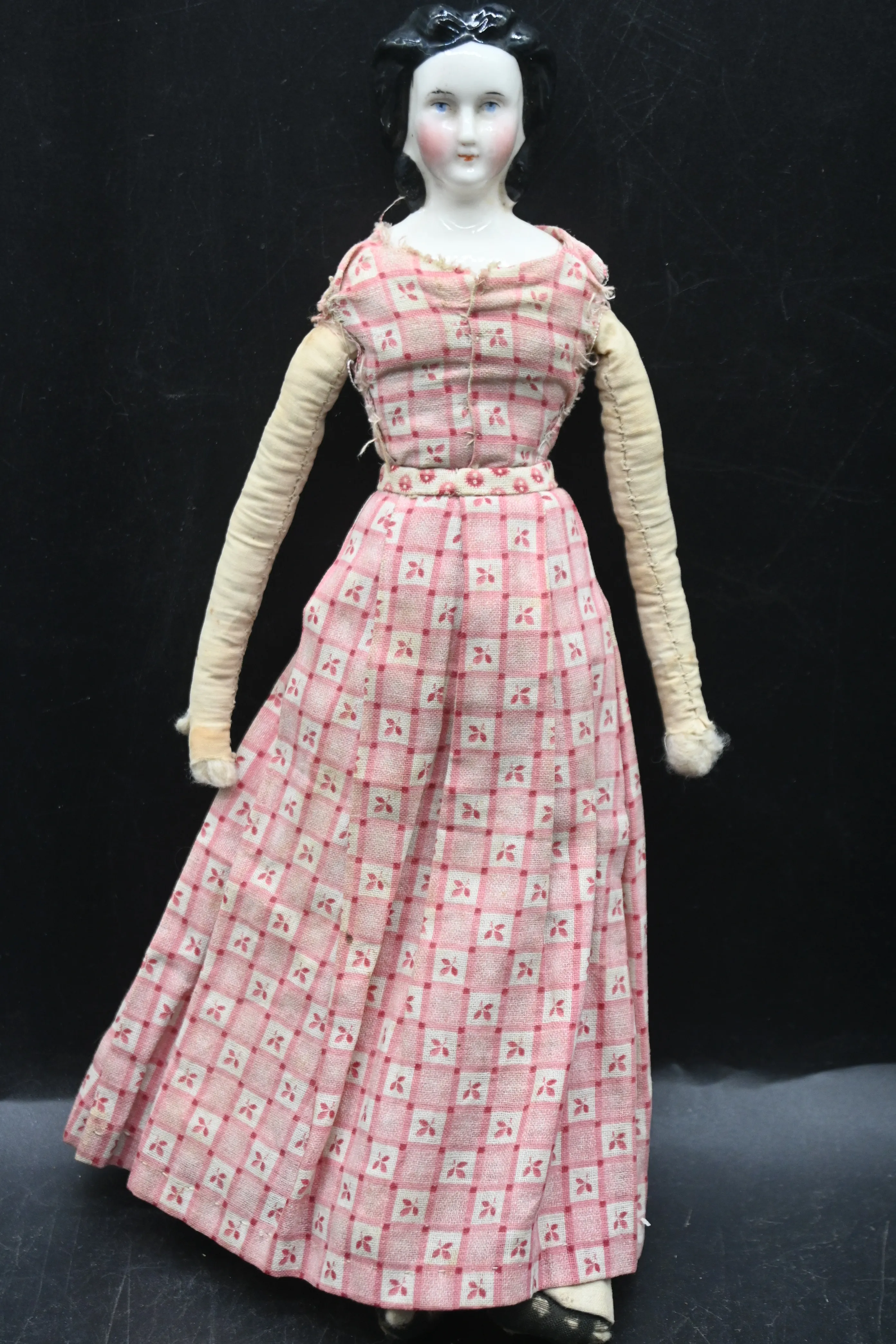 373. Docka i porslin 1850-tal, Proveniens Näsberget (Malung) H.27.5cm