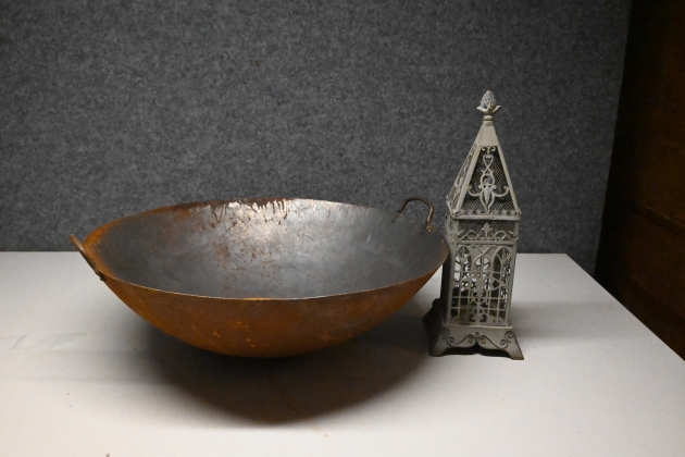 576. Eldskål med handtag D.66cm (rostanlupen) + ljuslykta