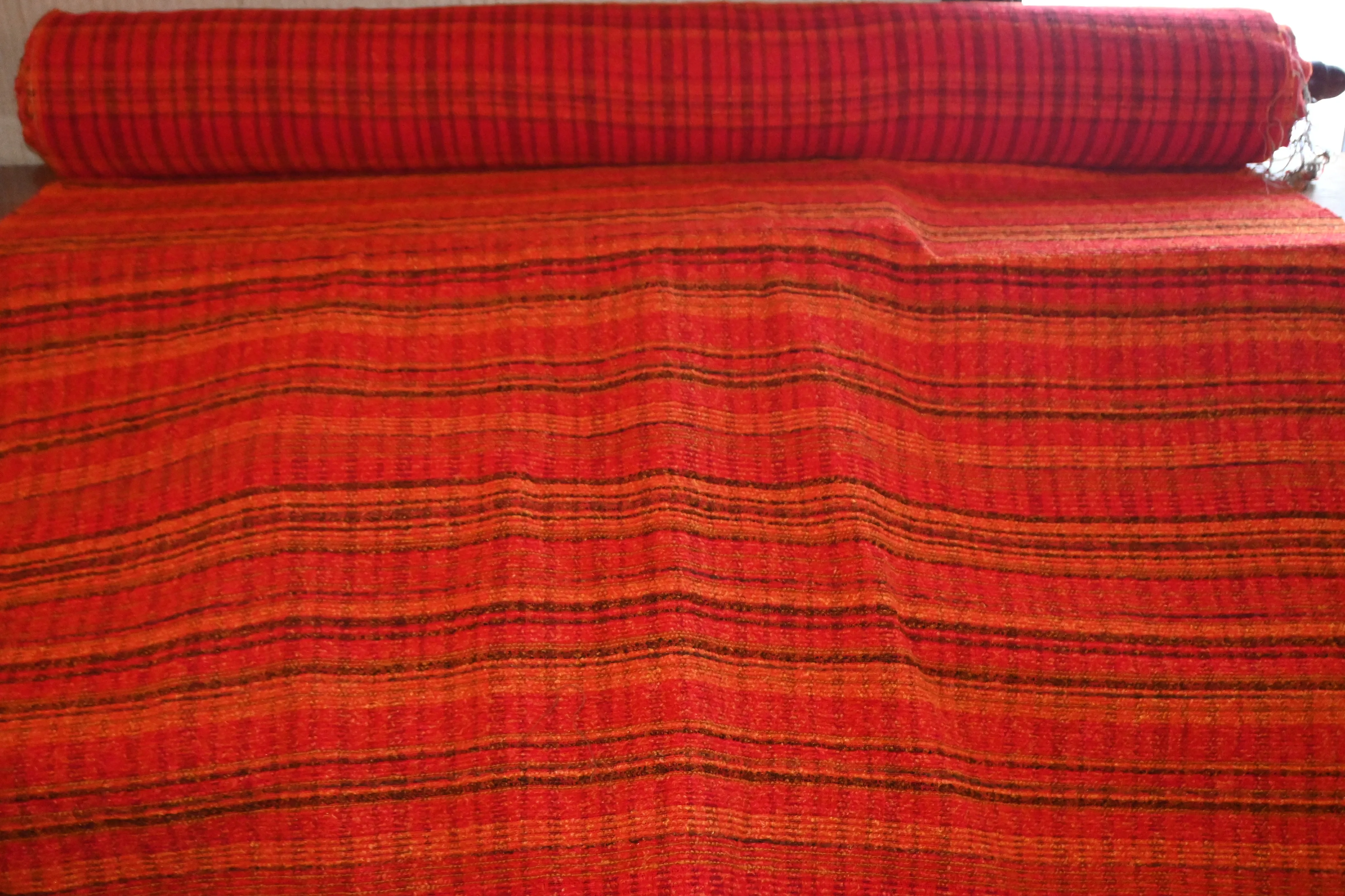 218. En rulle hemvävt tyg B.145cm D.20cm