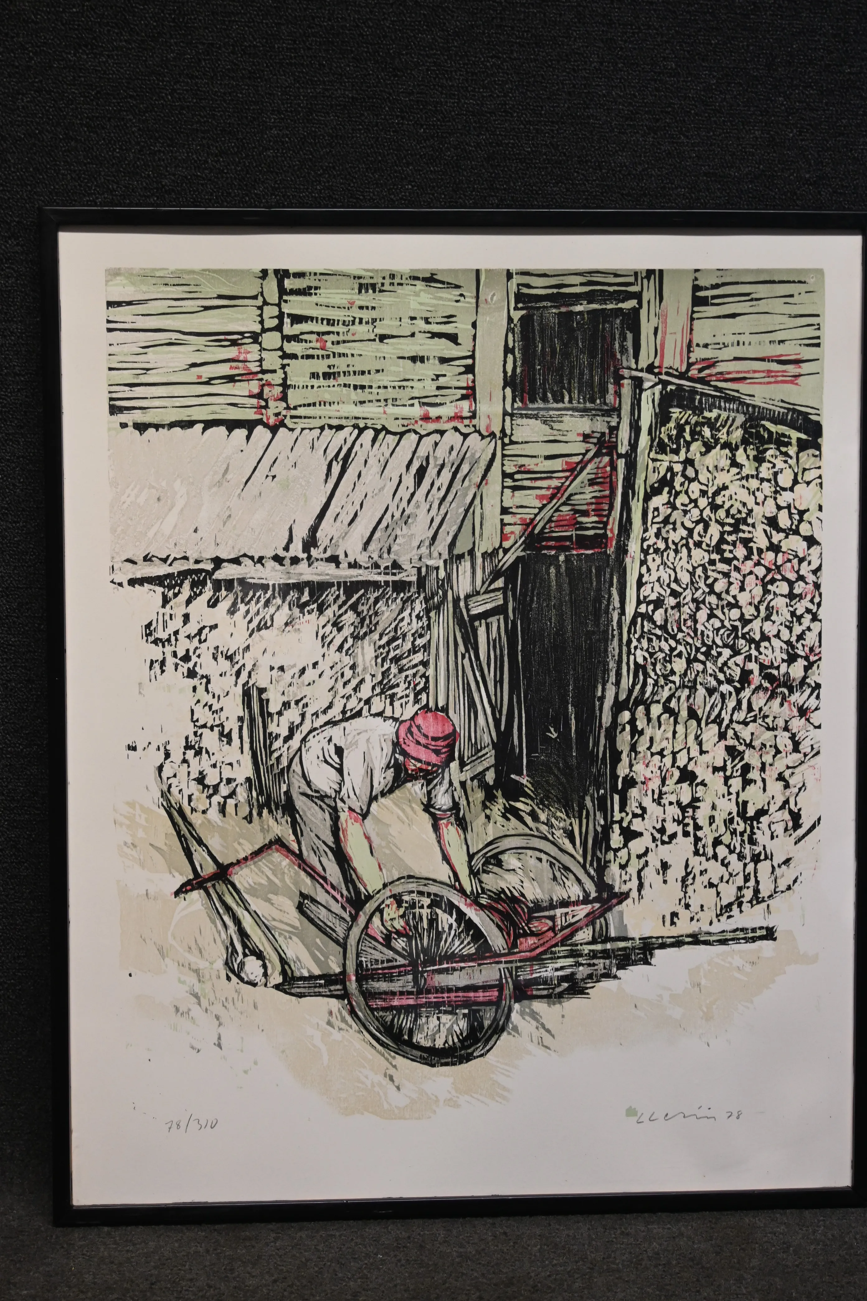 344. Färgträsnitt 78/310 av Lars Lerin-78 "Vedhämtning" mmr.58x71cm