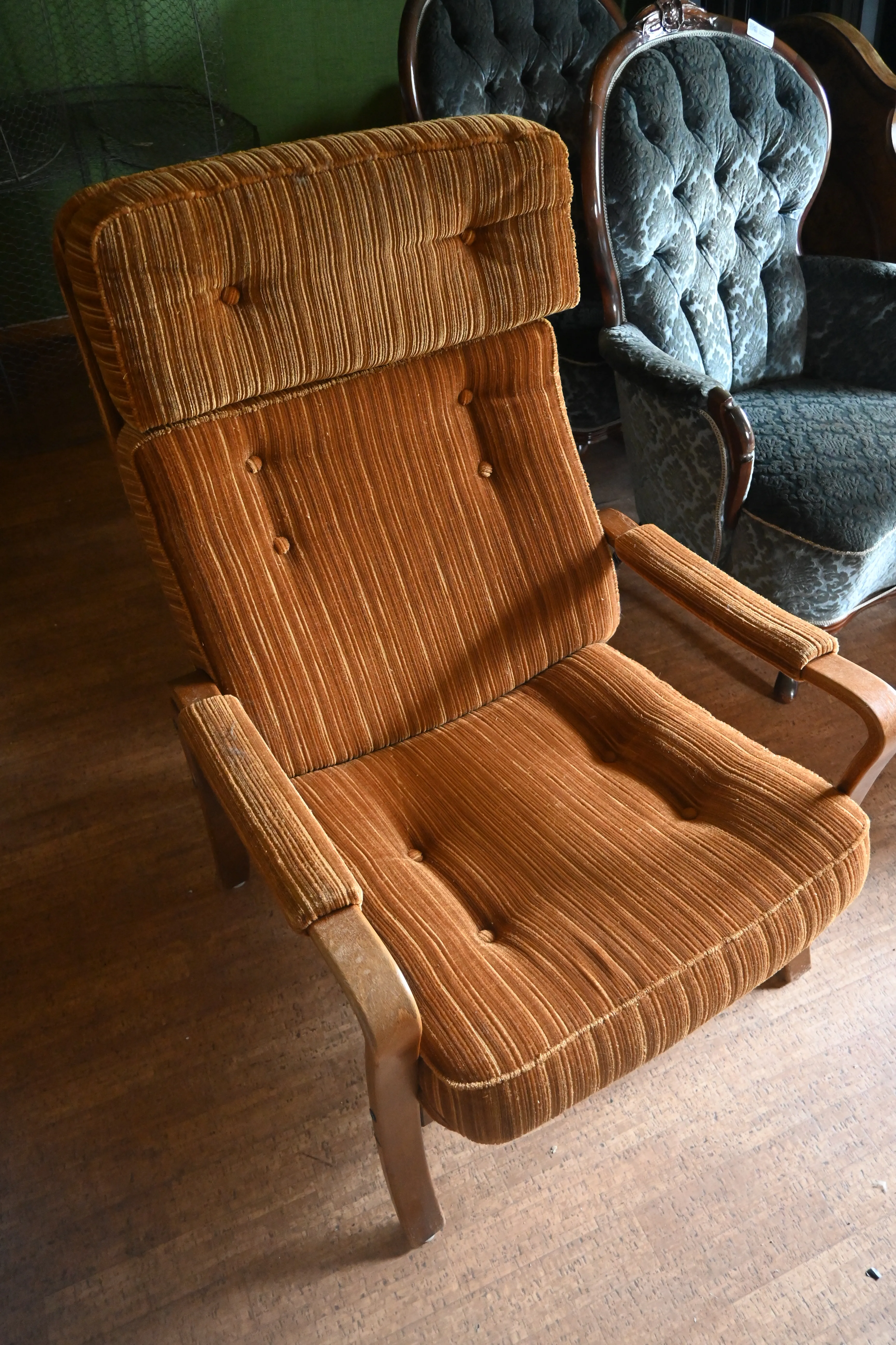 392. Fåtölj 1970.tal Manchestertyg (bruksslitage)