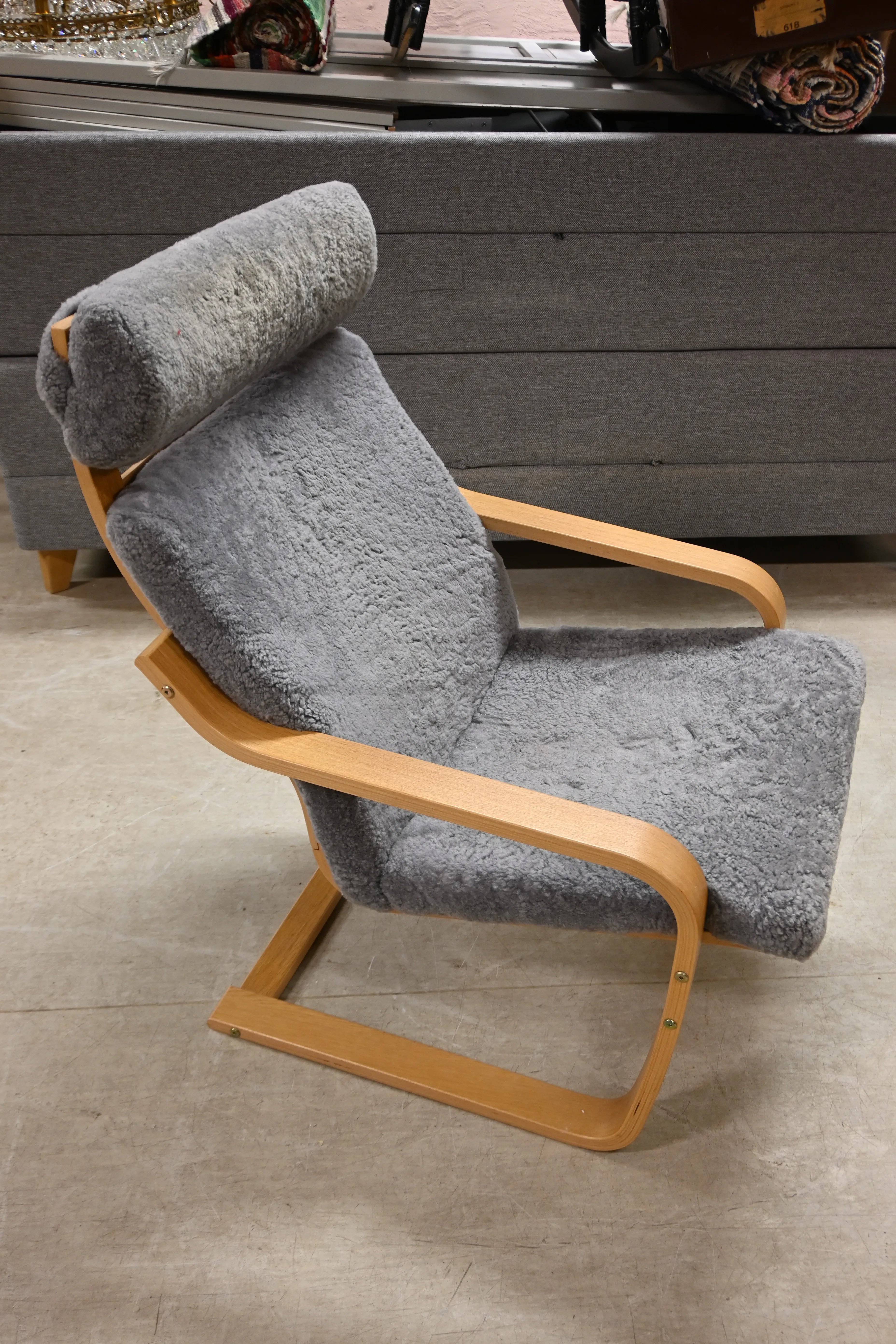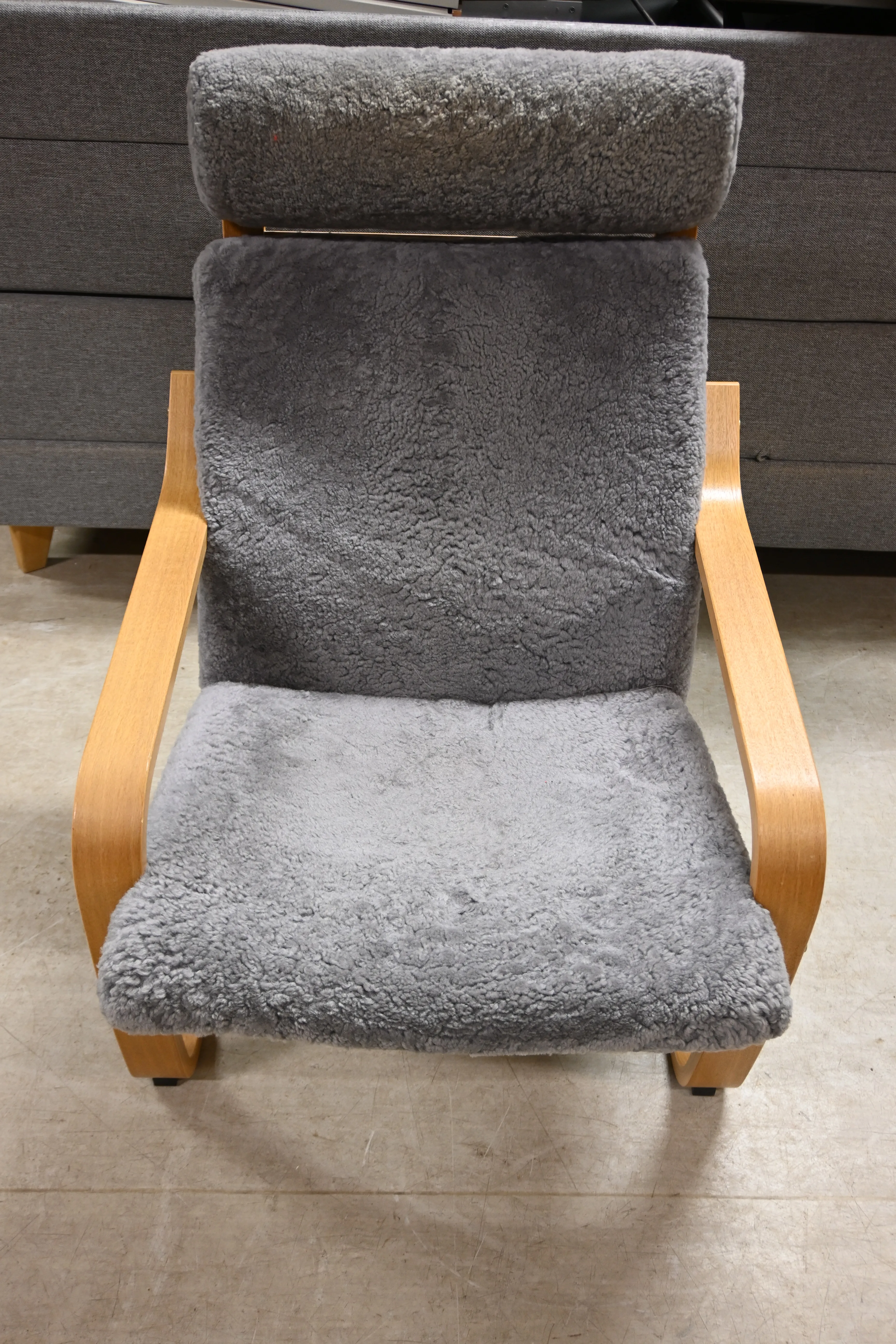 424. Fåtölj i ek & fårskinn av Noboru Nakamura för Ikea 2000.tal (bruksslitage)
