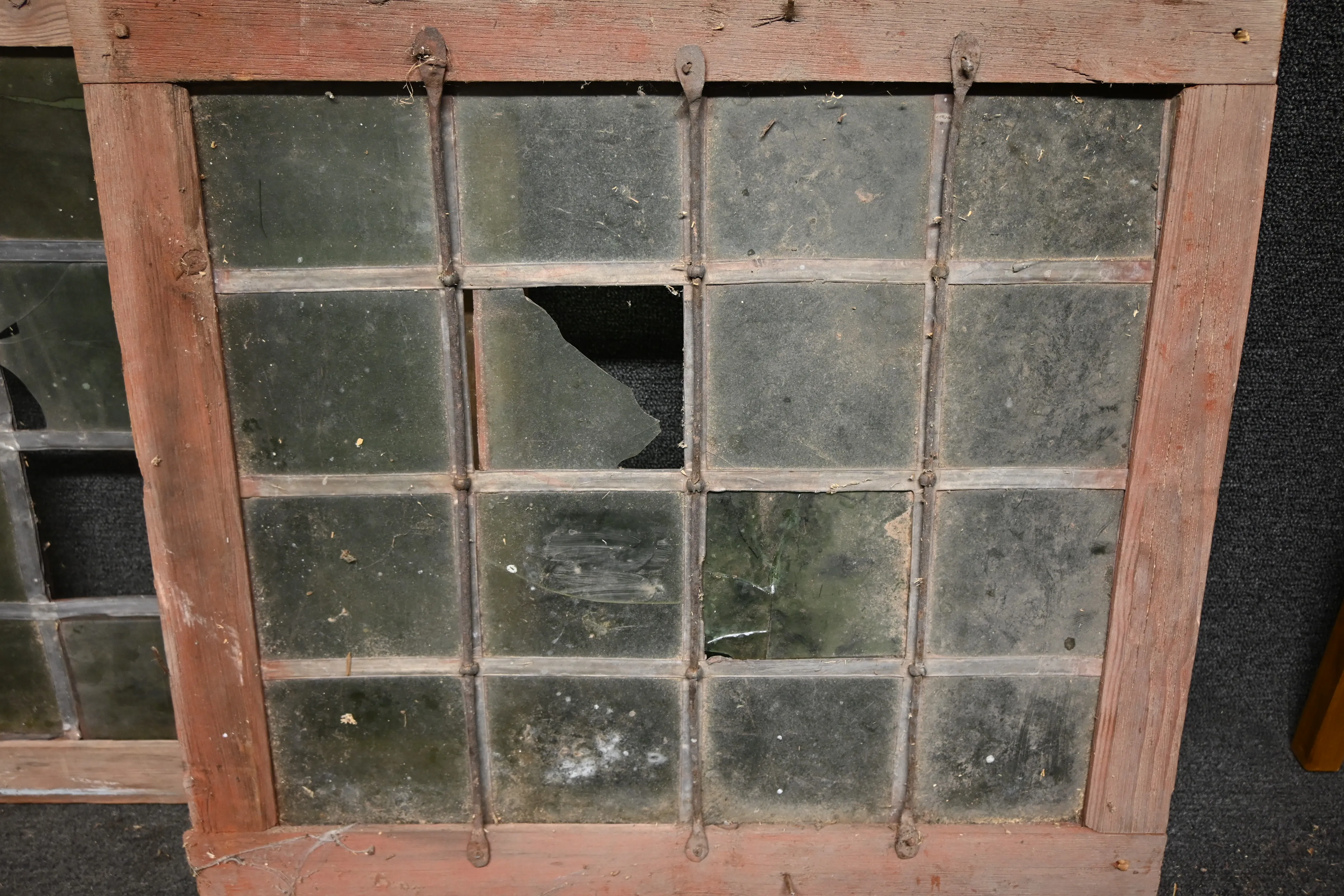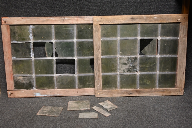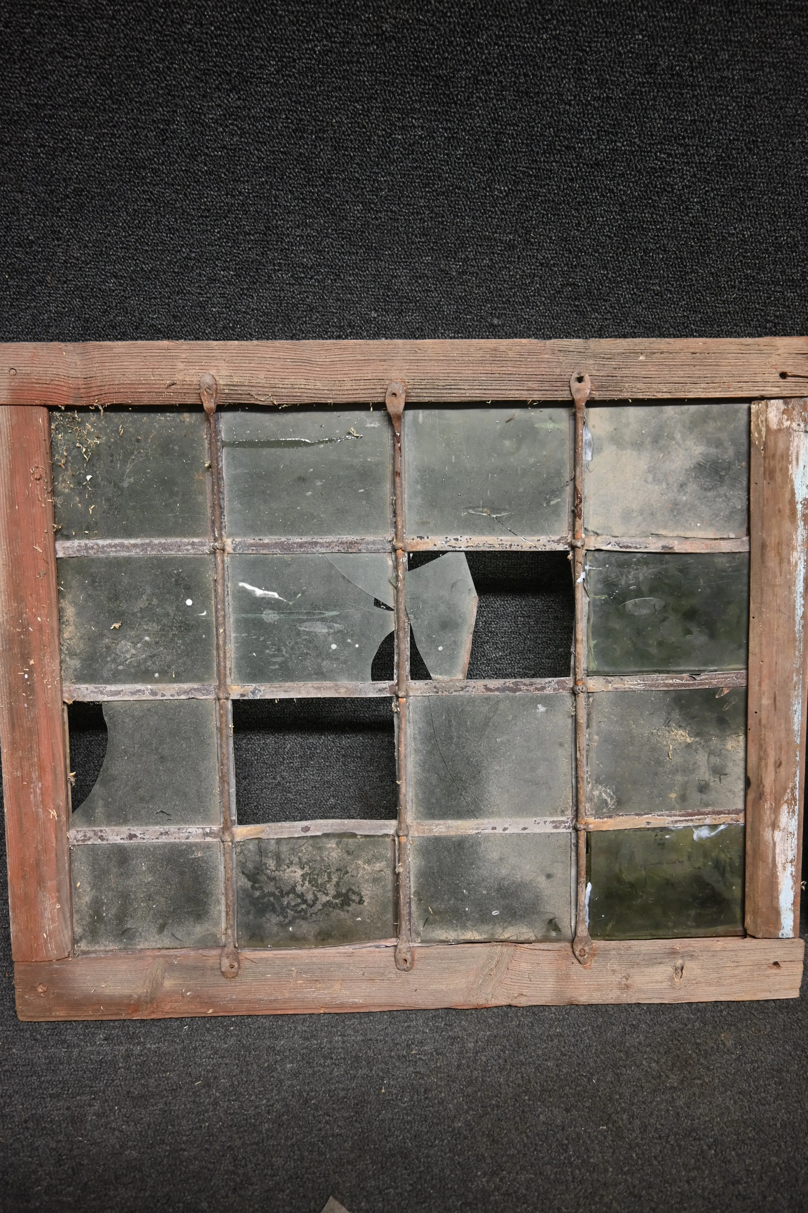 28. Fönster med blyinfattat glas sekelsk 18/1900.tal H.56cm B.62cm & 65.5cm, (åldersrelaterad slitage, ngt glas defekt)