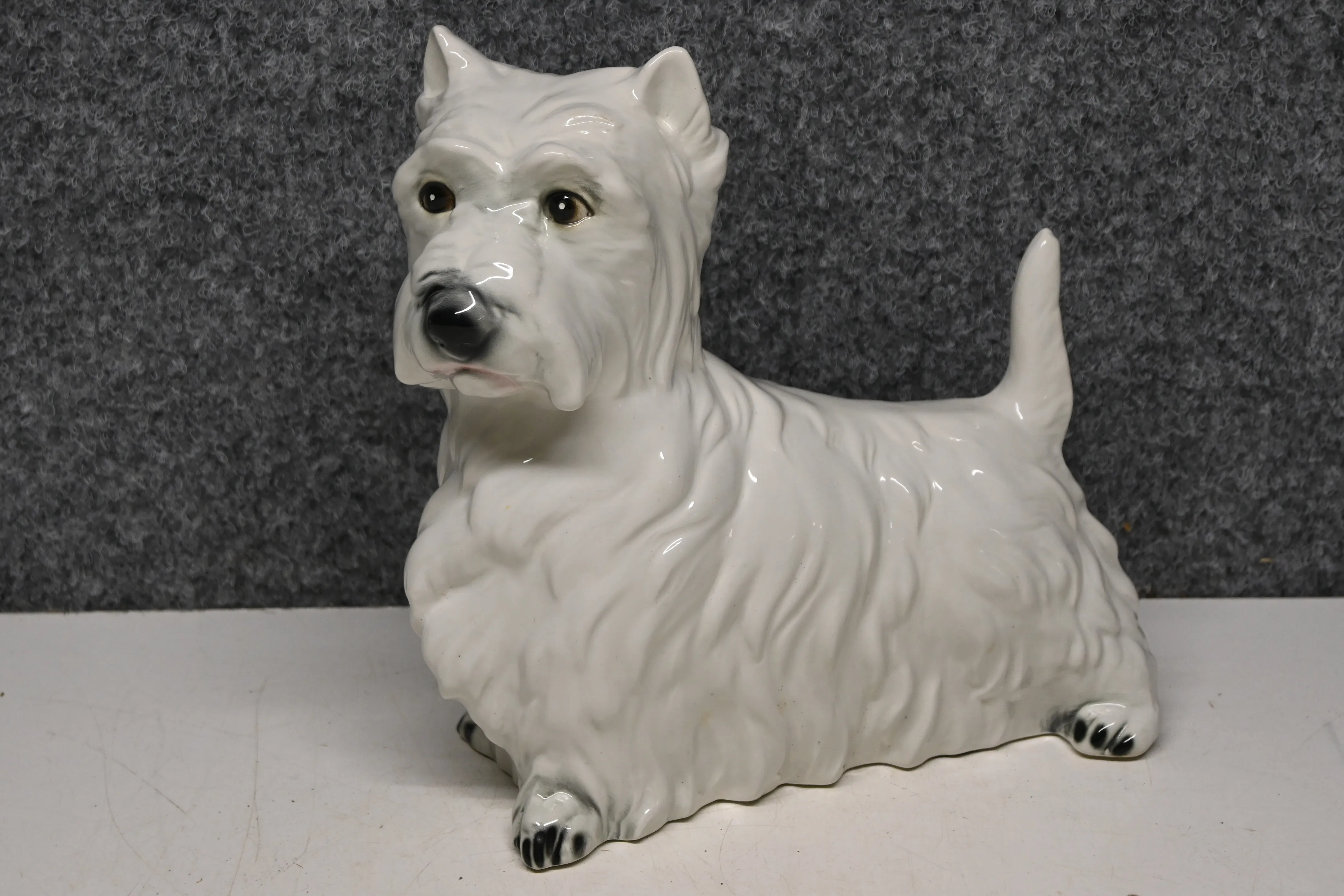 115. Figurin, Hund i porslin L.25cm H.26cm