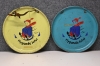 Flygande Tefat i plåt 2st 1960.tal D.39.5cm (åldersrelaterad slitage)