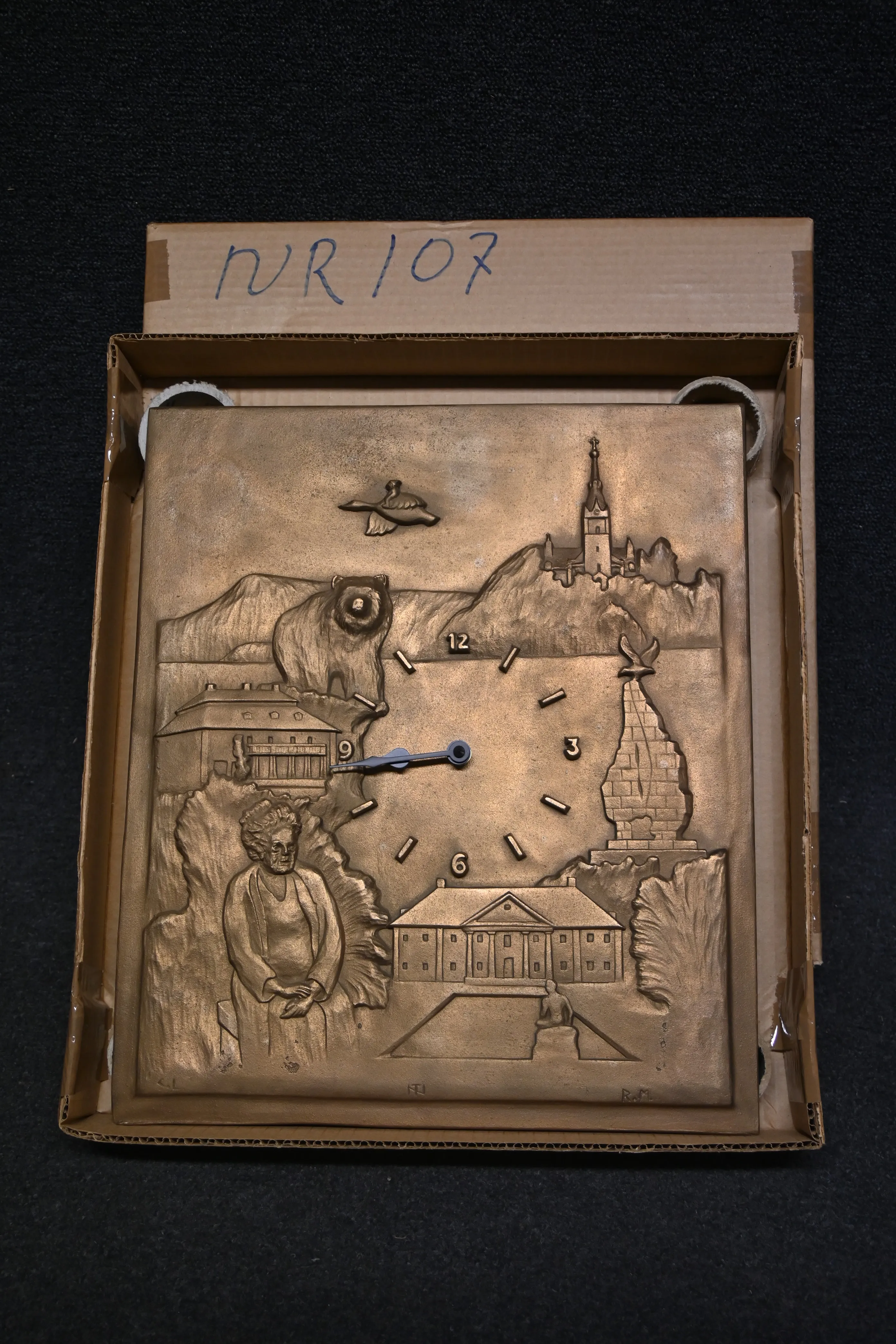 526. Fryksdalsuret är en handgjord malmrelief som är sandgjuten konstnär Sven Linnerstorp, tekniker Tord Nilsson nr.150 mått=33.5x39cm (oanvänd)528. Fryksdalsuret är en handgjord malmrelief som är sandgjuten konstnär Sven Linnerstorp, tekniker Tord Nilsson nr.106 mått=33.5x39cm (oanvänd)