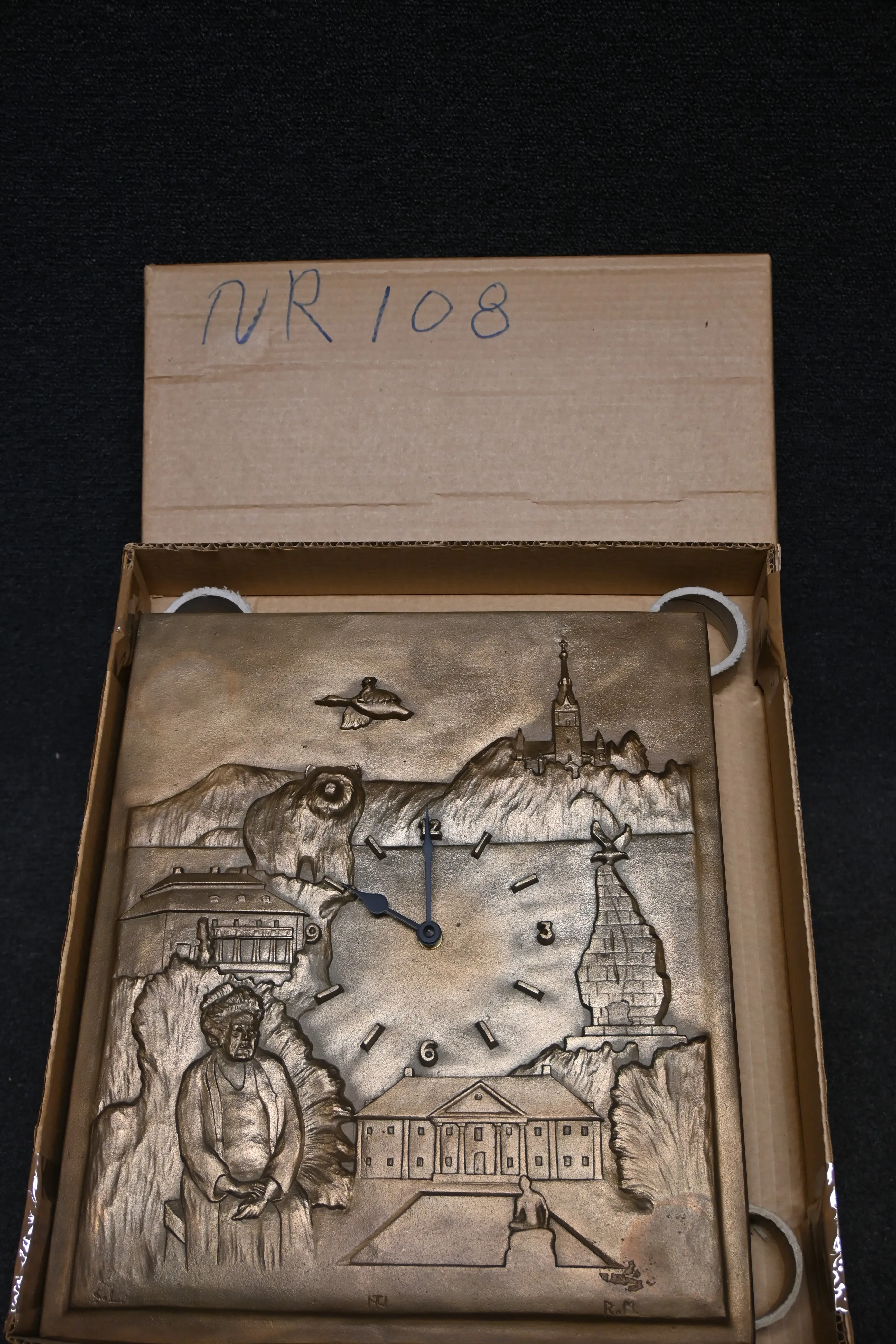 514. Fryksdalsuret är en handgjord malmrelief som är sandgjuten konstnär Sven Linnerstorp, tekniker Tord Nilsson nr.95 mått=33.5x39cm (oanvänd)516. Fryksdalsuret är en handgjord malmrelief som är sandgjuten konstnär Sven Linnerstorp, tekniker Tord Nilsson nr.85 mått=33.5x39cm (oanvänd)