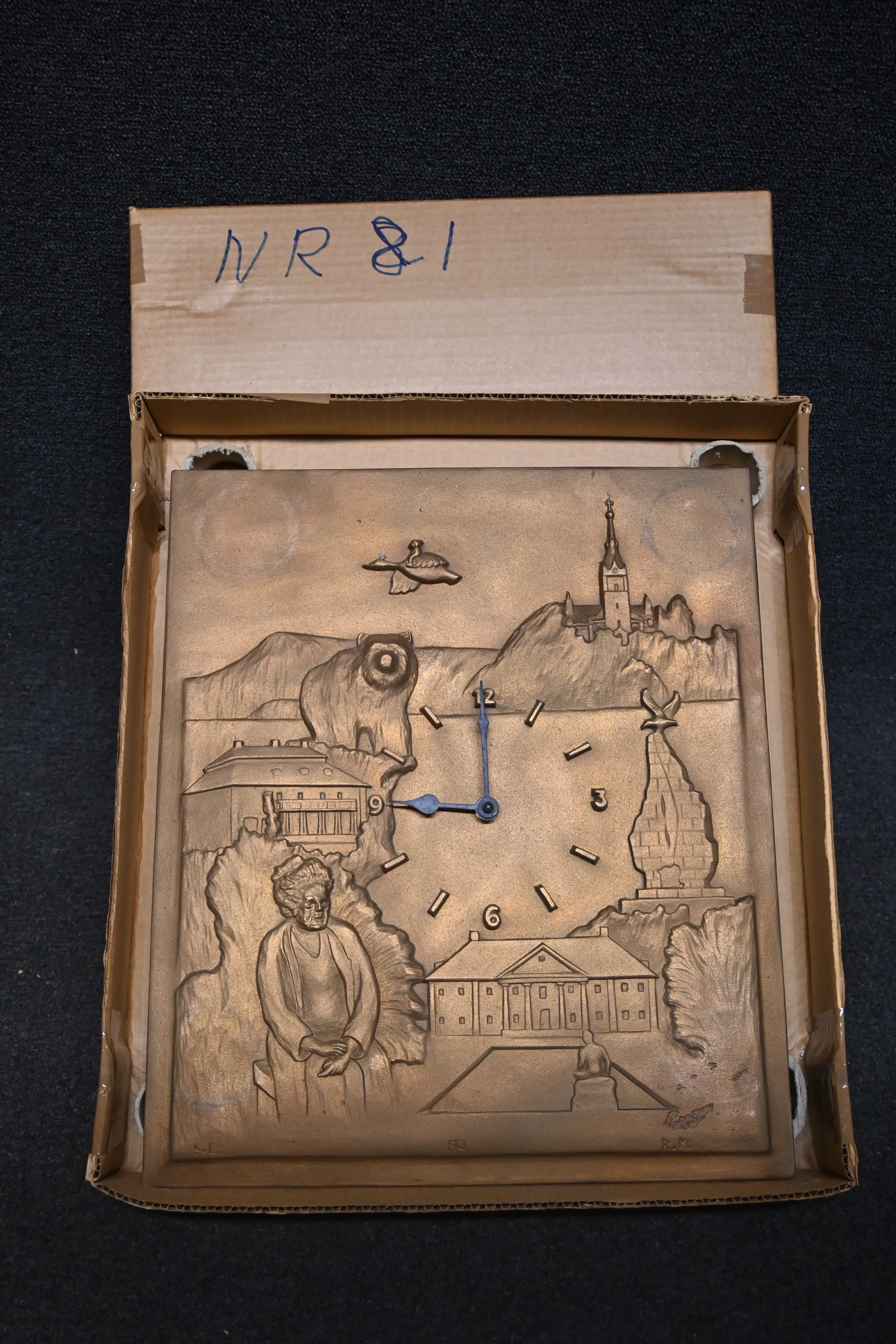 517. Fryksdalsuret är en handgjord malmrelief som är sandgjuten konstnär Sven Linnerstorp, tekniker Tord Nilsson nr.81 mått=33.5x39cm (oanvänd)