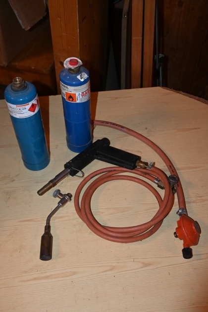 455. Gasolbrännare, reduceringsventil, 2st gasoltuber (med gasol kvar)