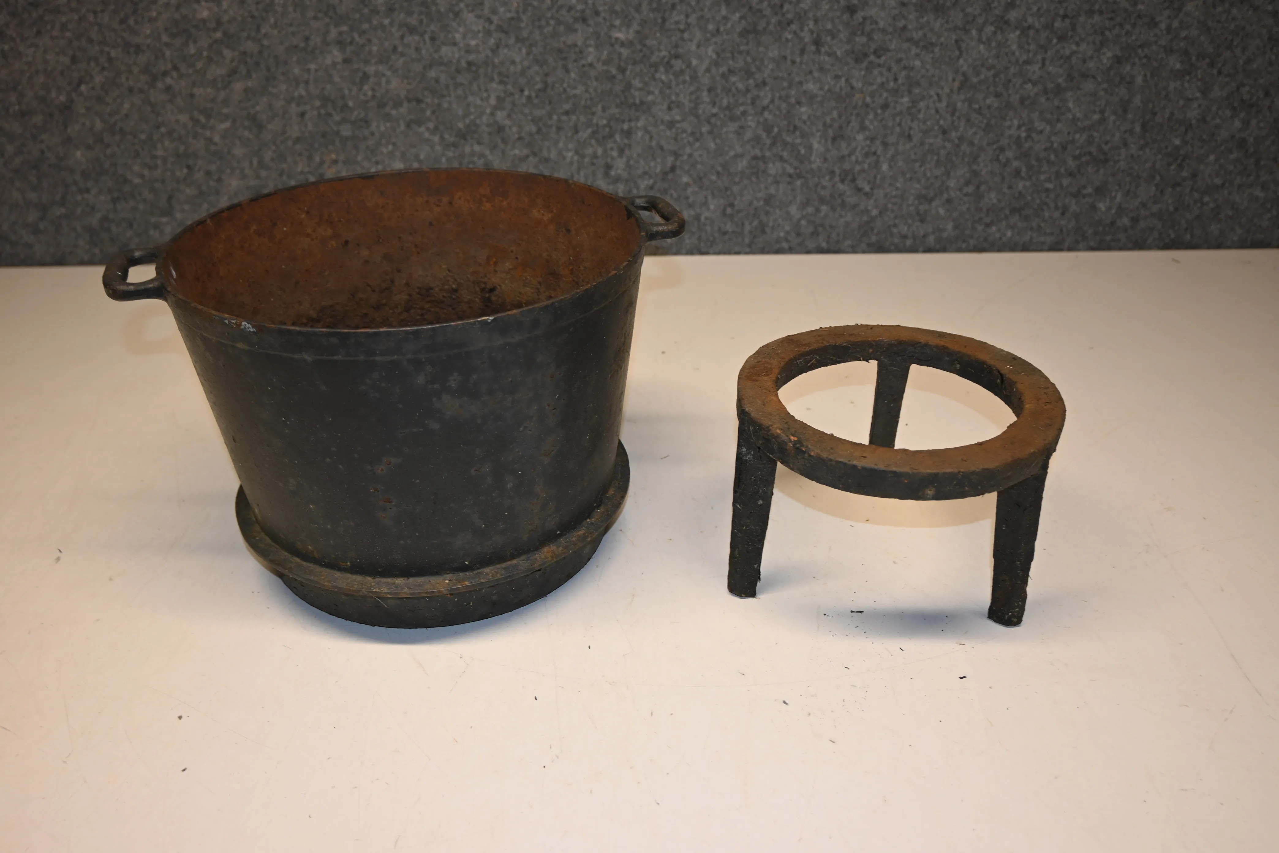 723. Gjutjärnsgryta 10.5L + smidesstativ