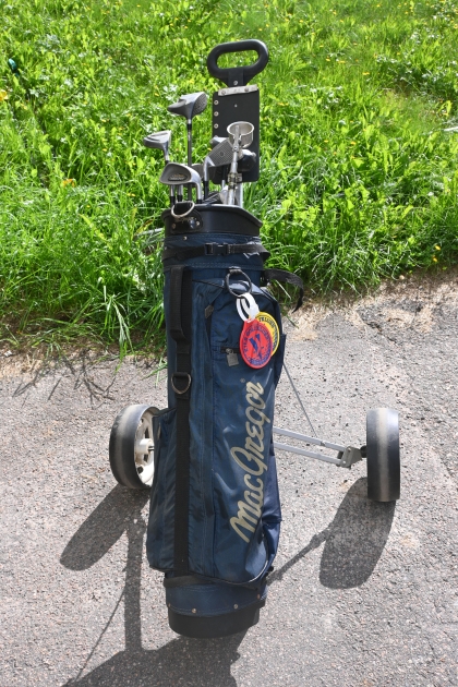402. Golvvagn + golfbag & klubbor (bruksslitage)