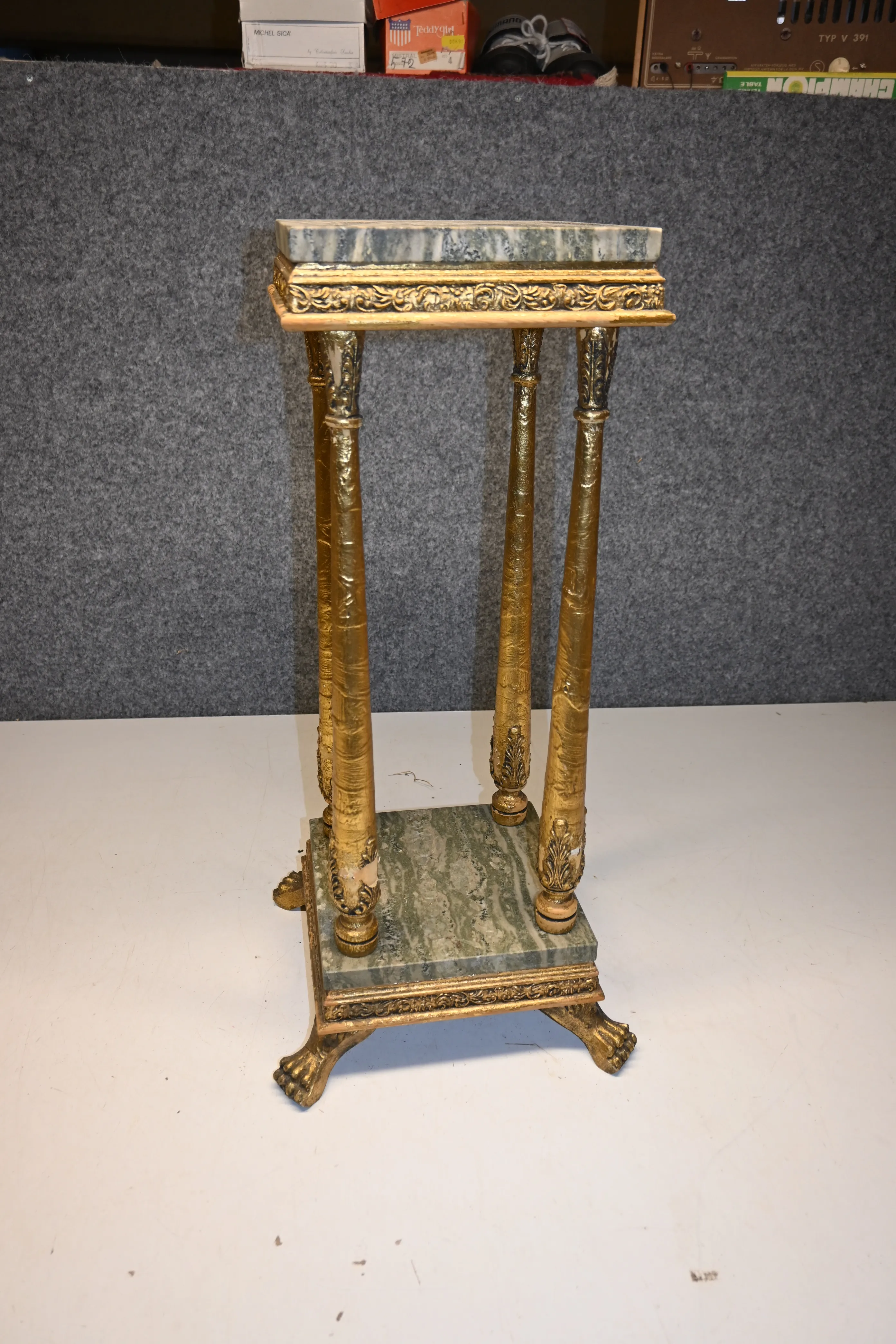 Guldförgylld piedestal med marmorskivor H.71.5cmcm (skador förekommer)