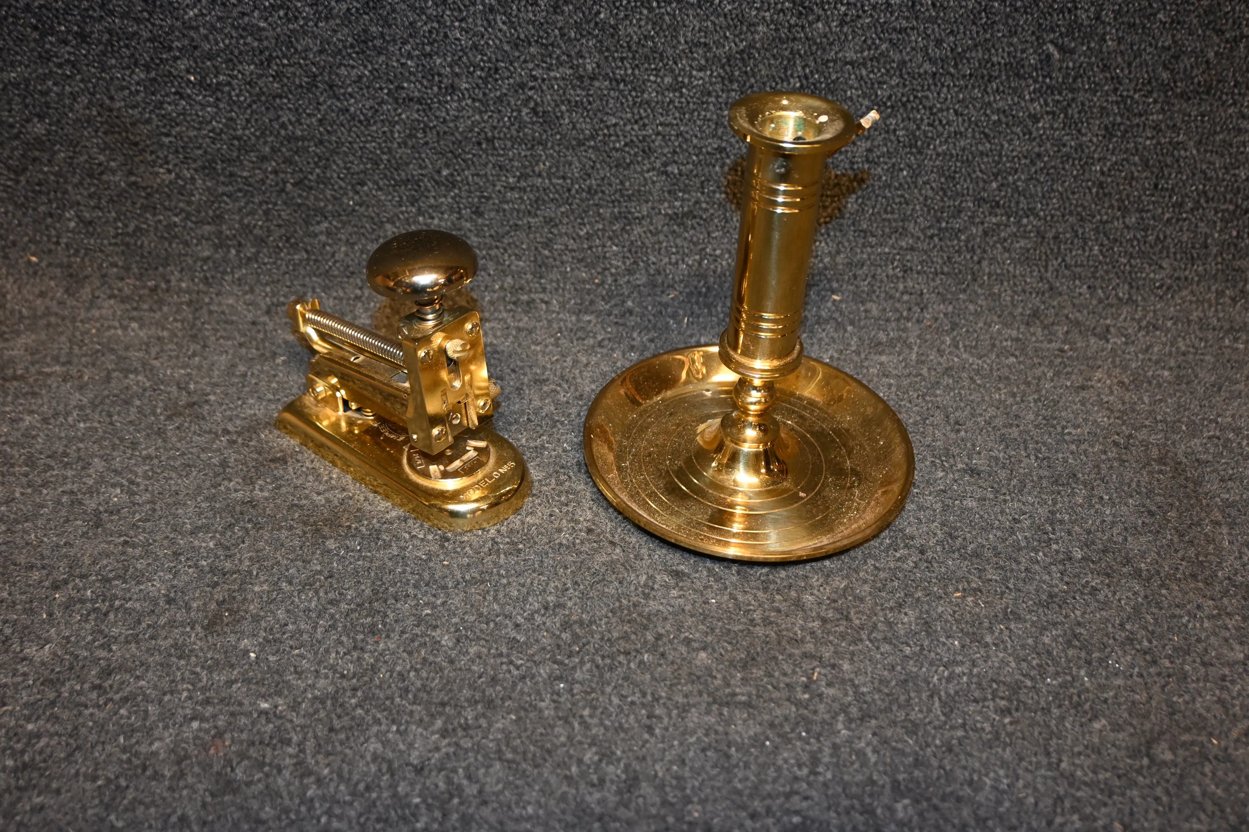 702. Häftapparat i mässing + nattljustake "Nils Holgersson garden AB"