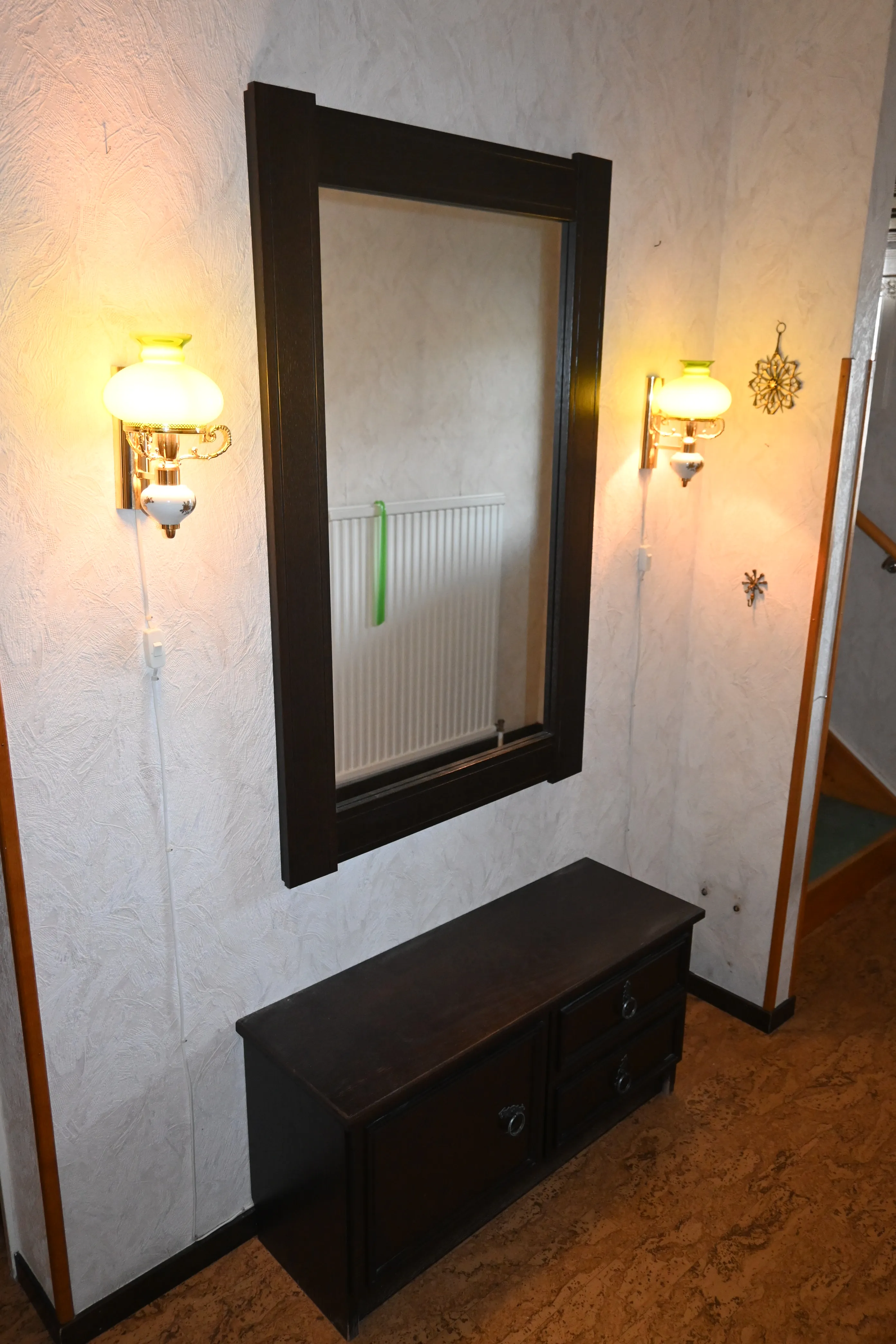 Hallmöbel, byrå + spegel & vägglampor (bruksslitage)