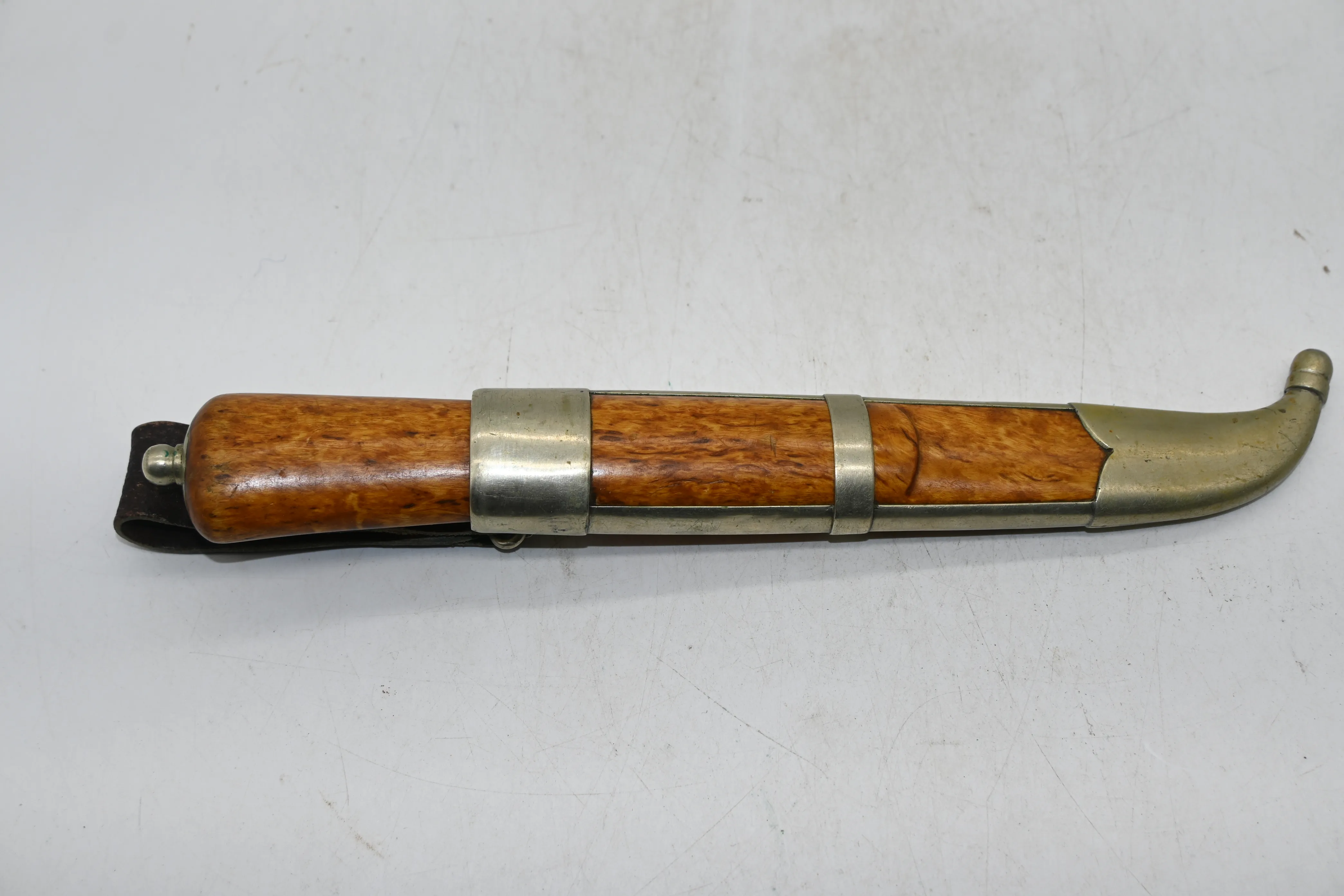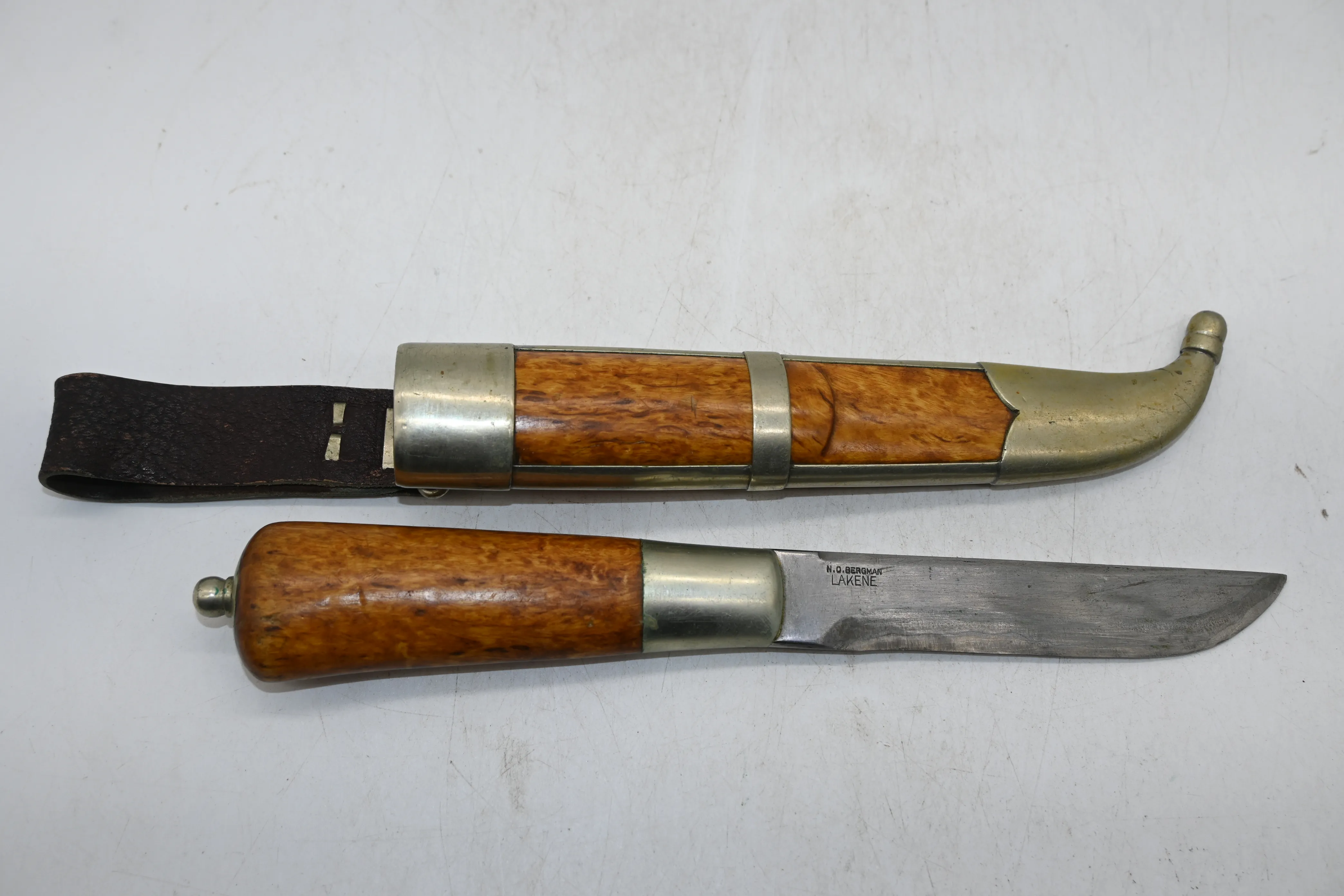 133. Handgjord kniv i masurbjörk av Nils-Olov Bergman (Lakene) L.26cm