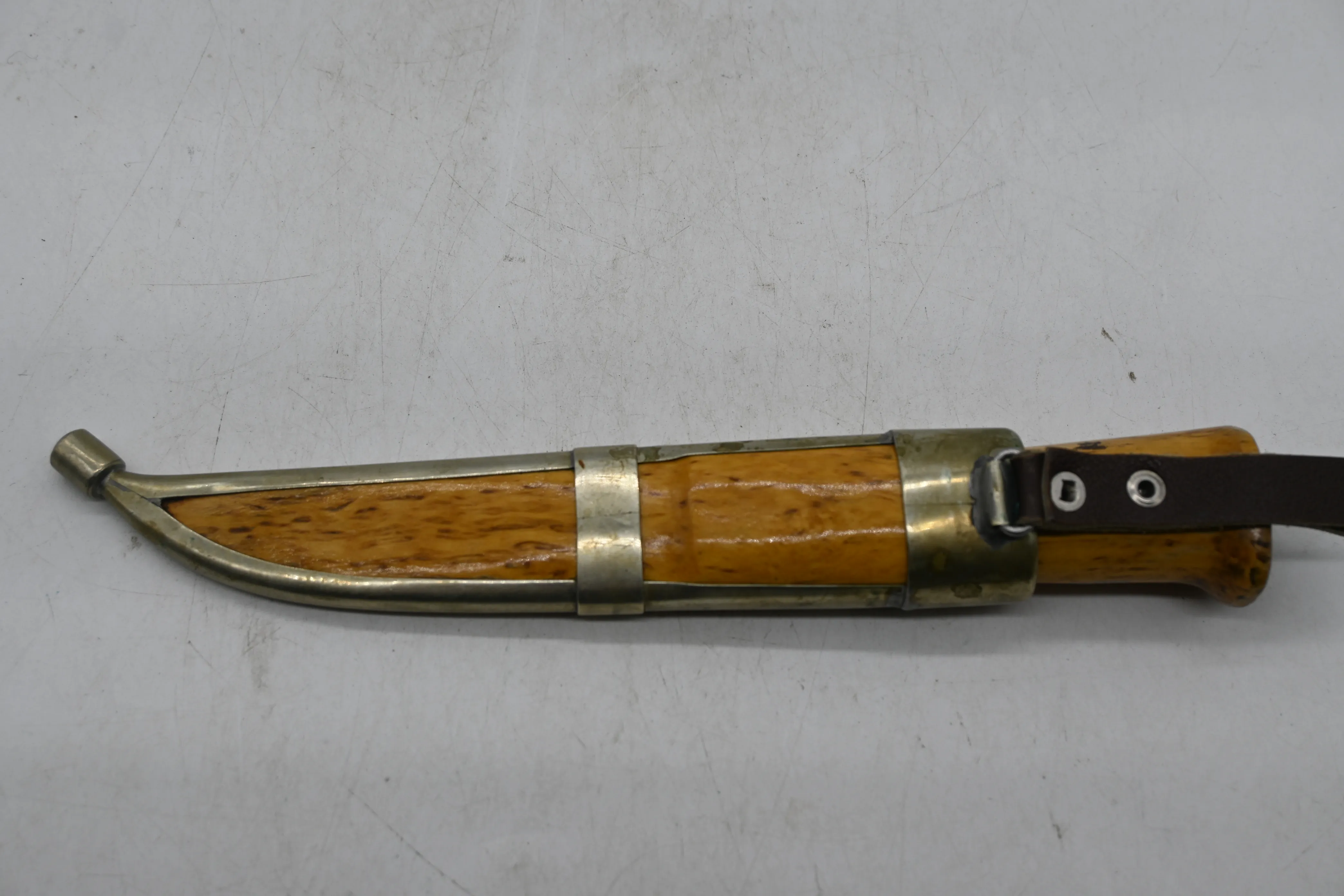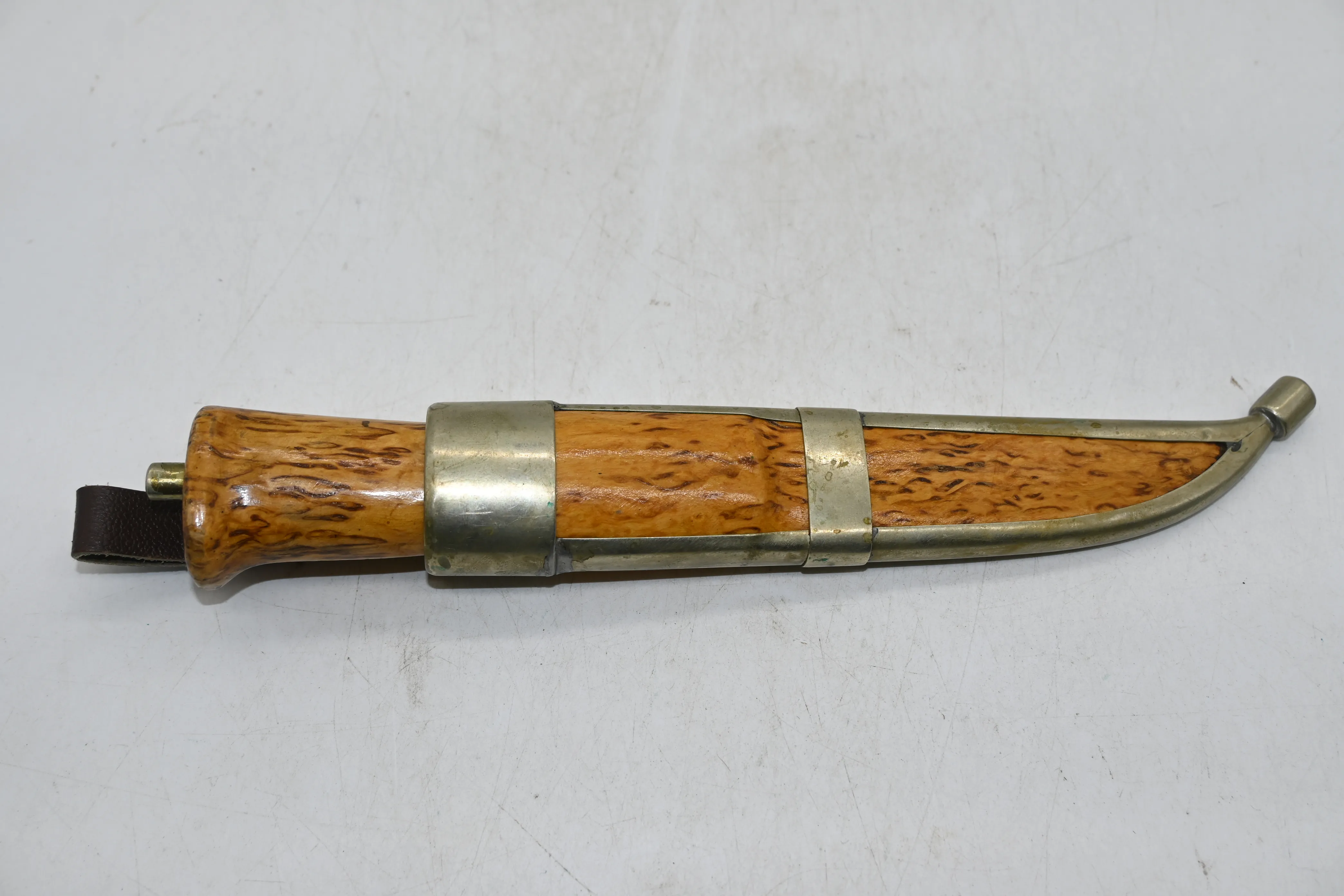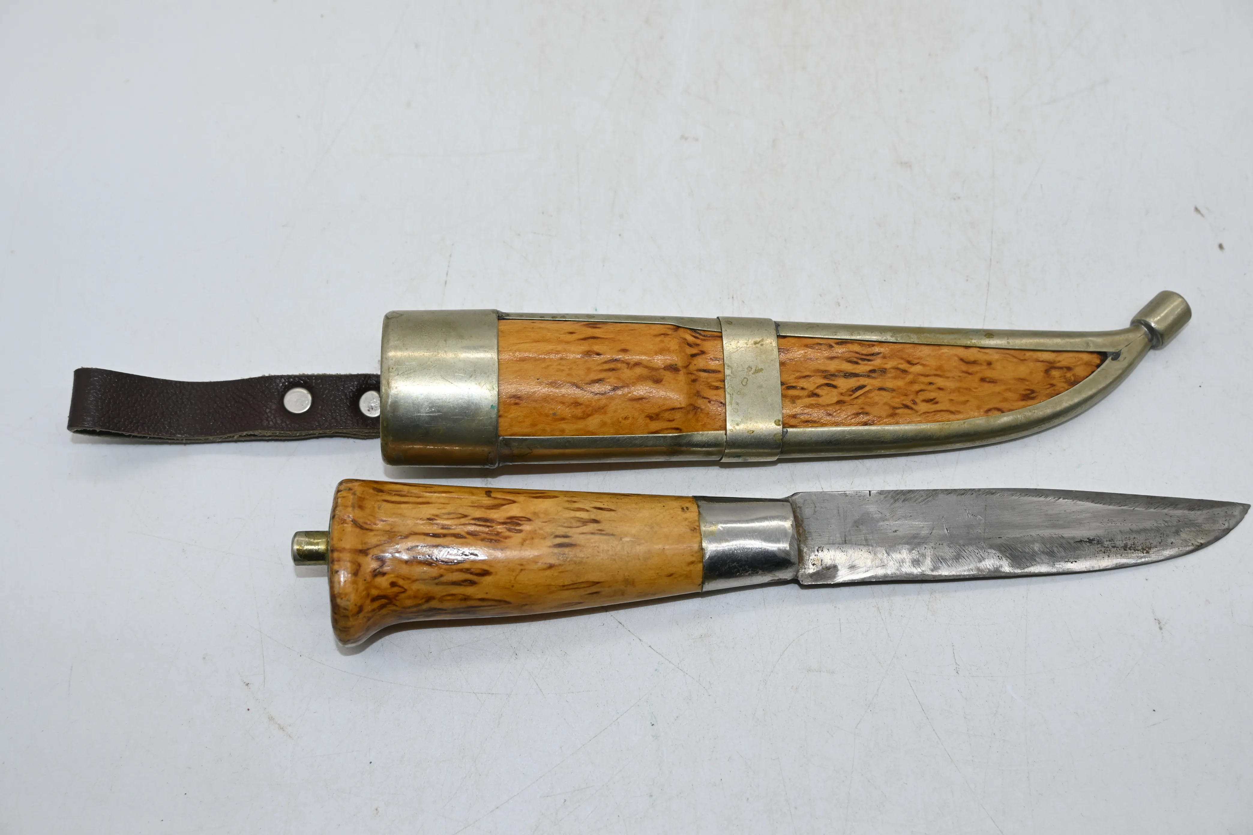 136. Handgjord kniv i masurbjörk, osignerad L.24.5cm