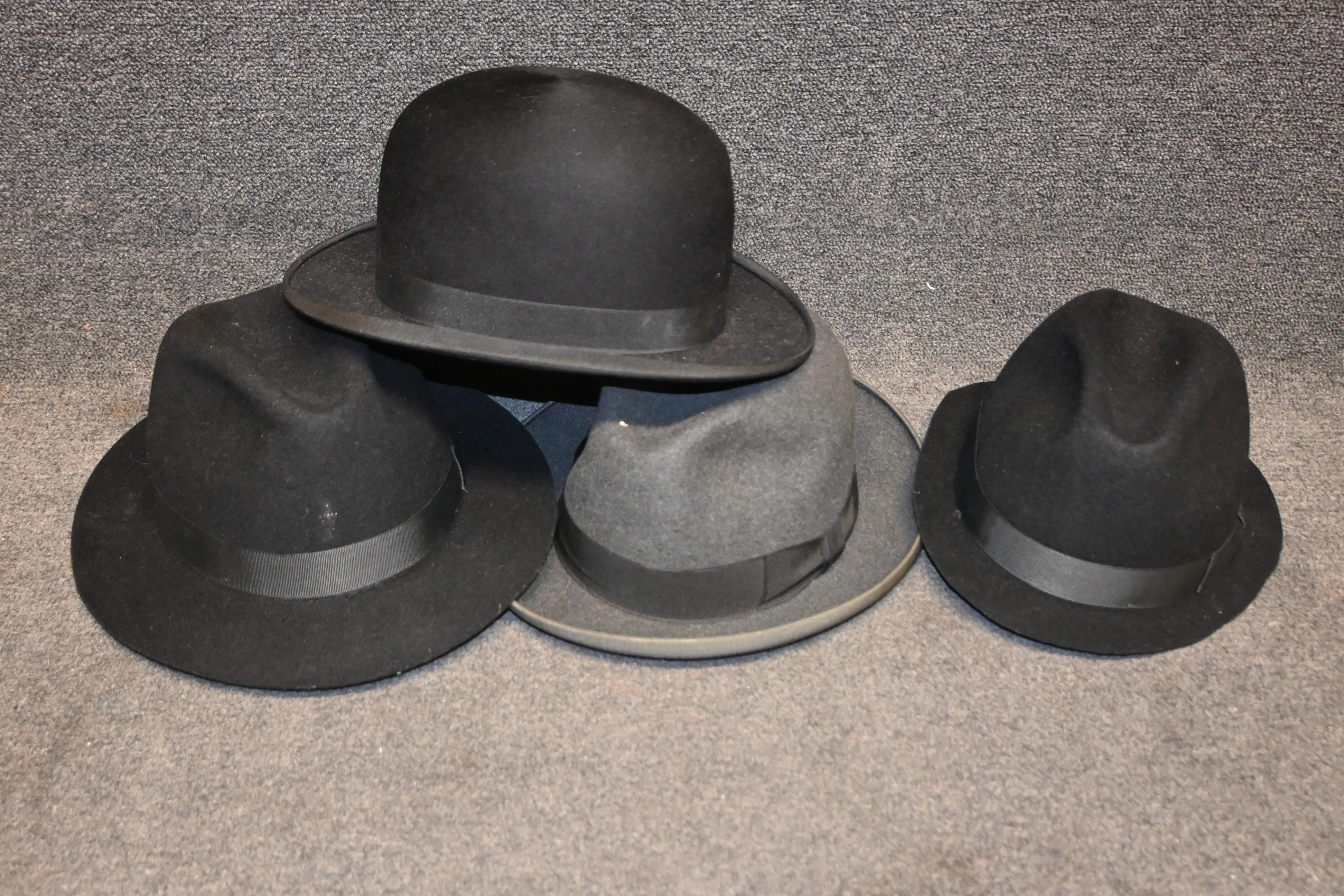 Hattar 4st bl a Windsor strl ca 58 (skada på plommonhatten)