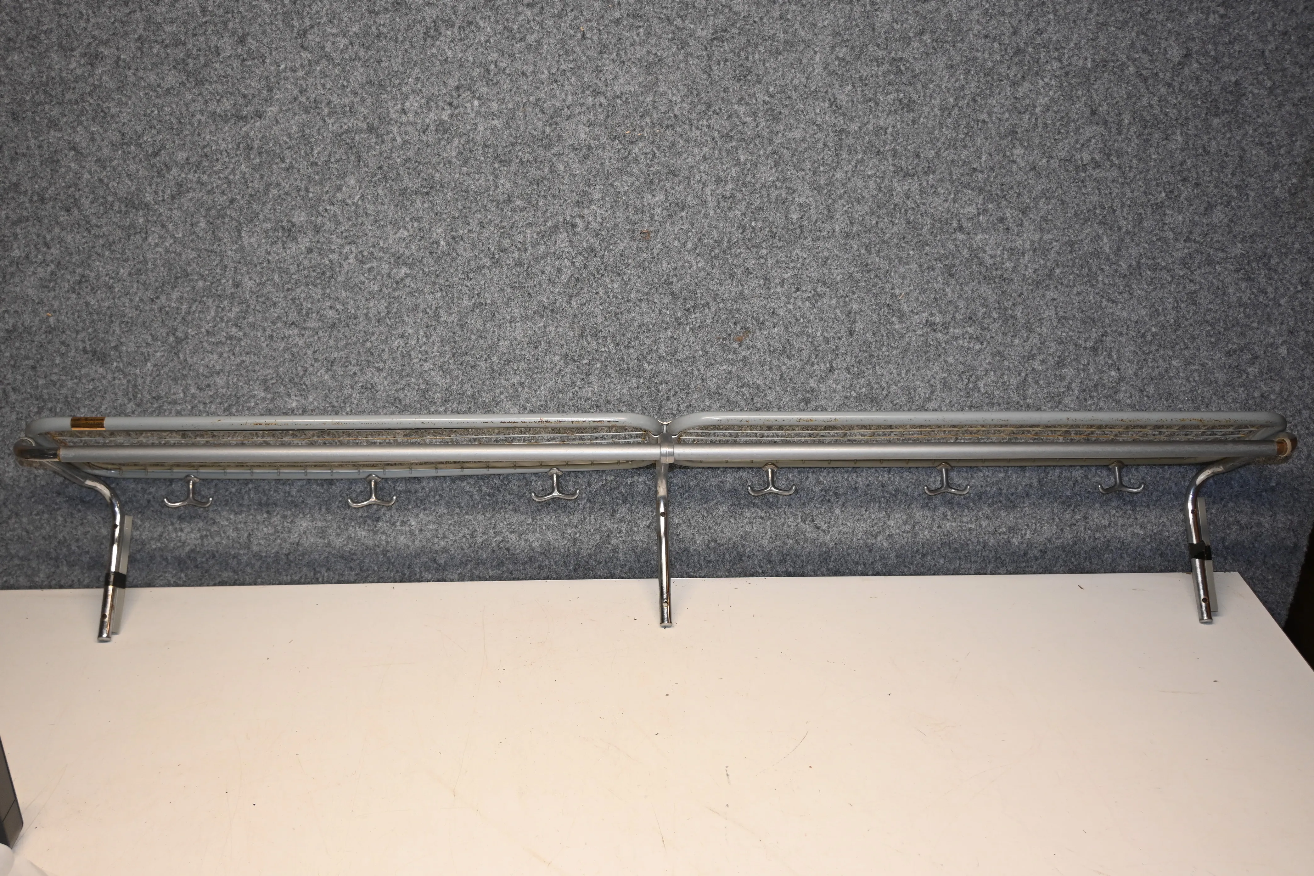 67. Hatthylla retro, Essem-hyllan L.150cm Dj.28cm (åldersrelaterad slitage)