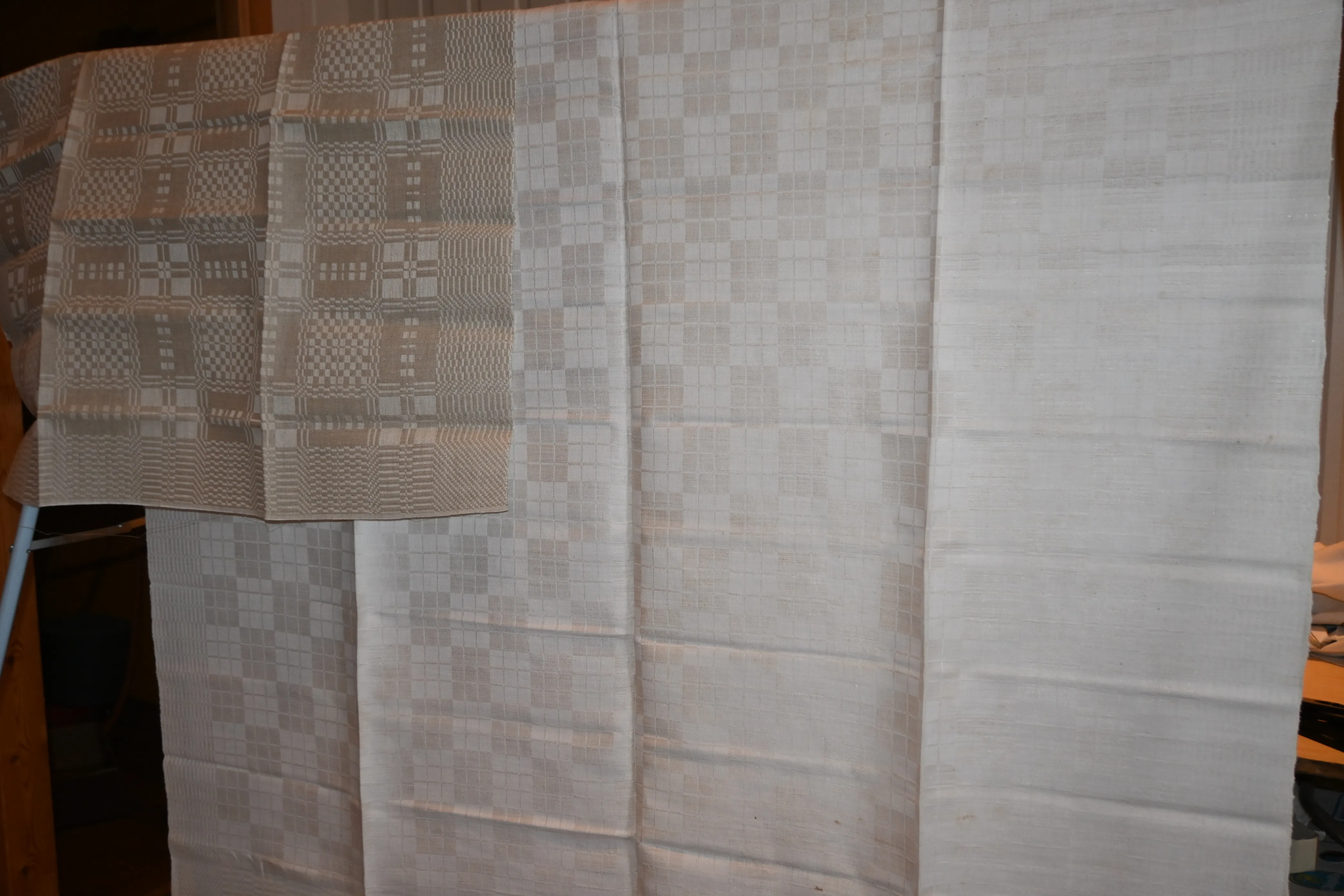 Hemvävd matsalsduk 133x220cm(ngn fläck) + hemvävd duk (ofållad) 87x91cn
