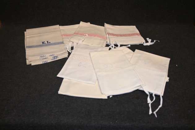 249. Hemvävda kökshanddukar 2st + hemvävda örngott 3st + div örngott