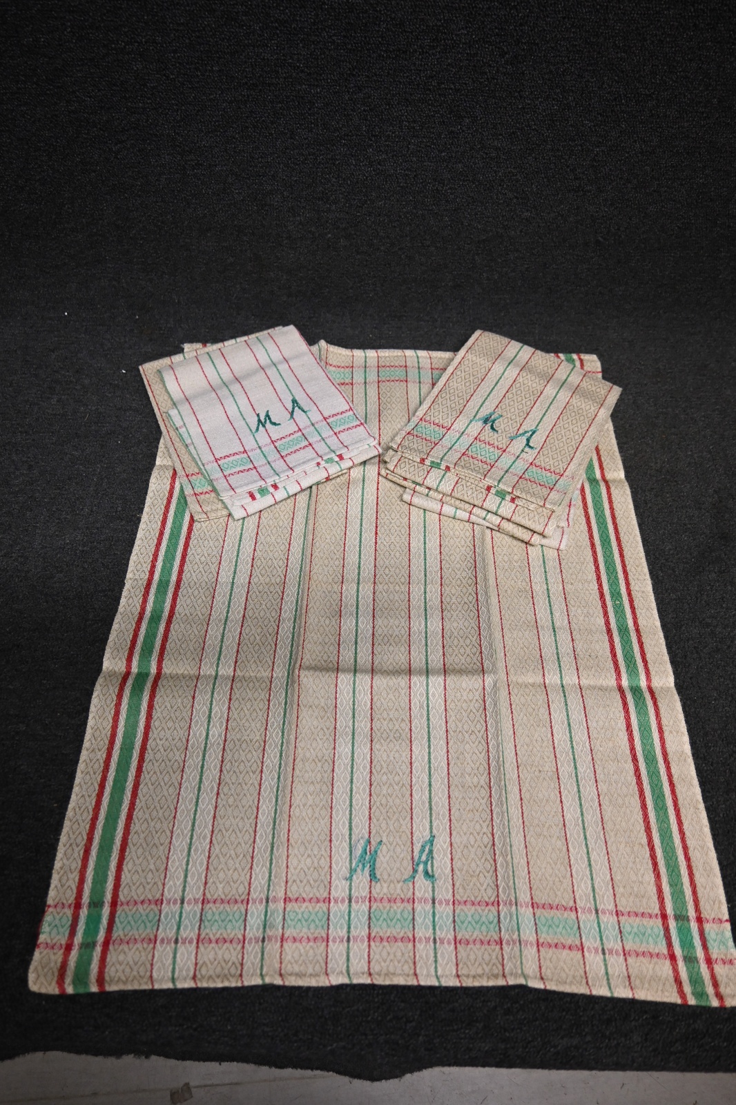 140. Lakan med broderi o spets 5 st , 2 st hemvävda