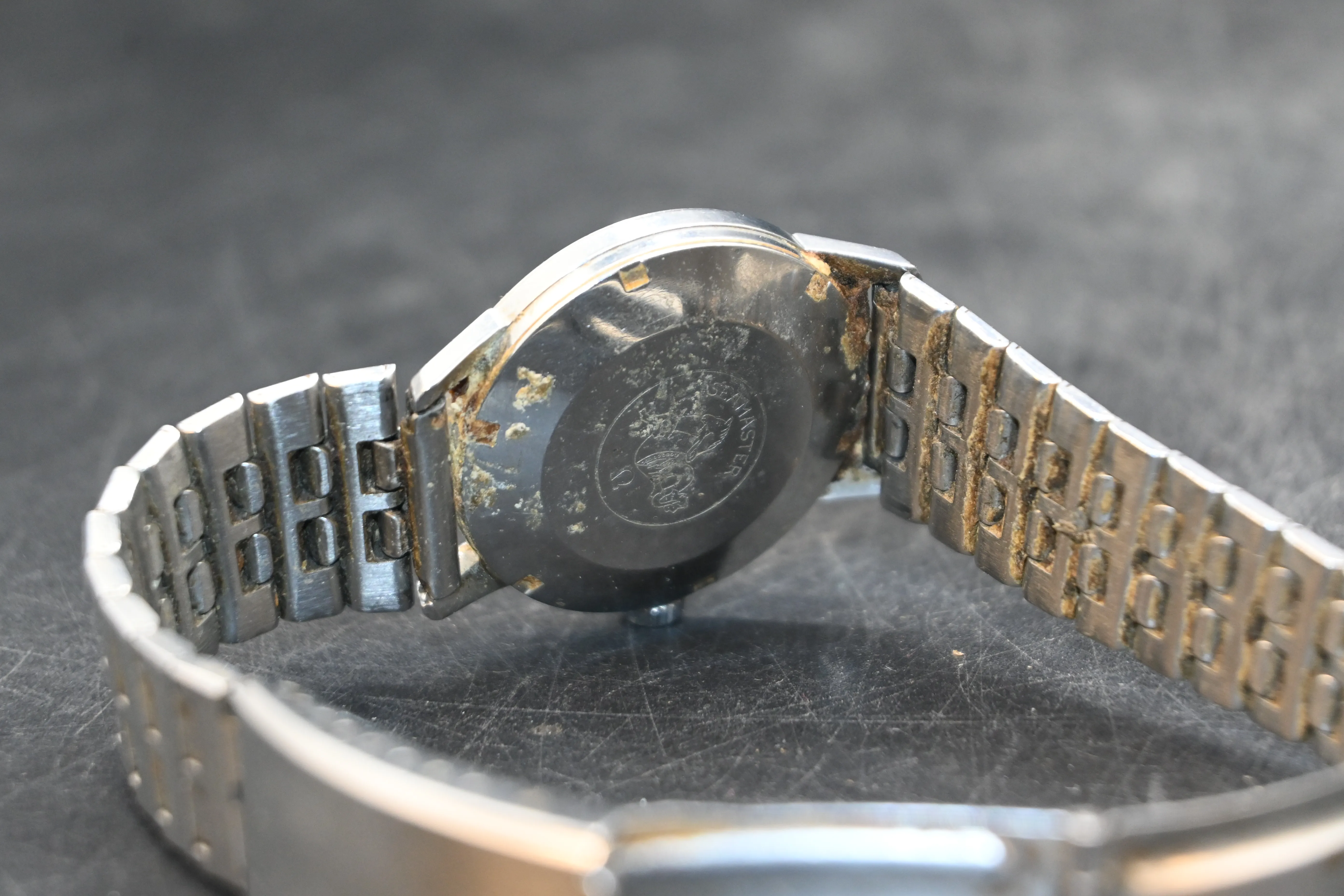 517. Herrarmbandsur, Omega Seamaster (bruksslitage, märken på glas), Enicar waterproof repor på glas (båda fungerar)