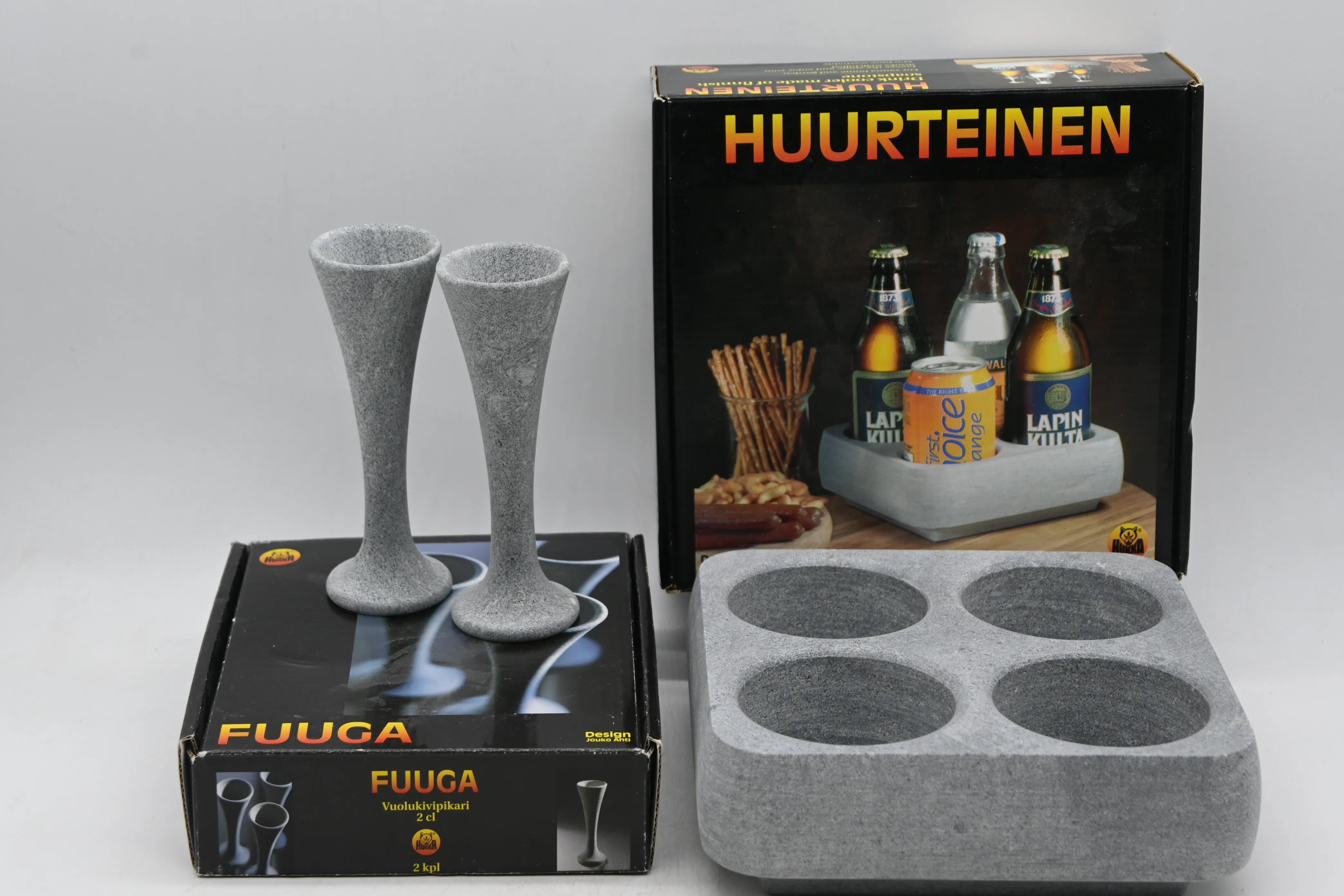 Hukka-Dryckeskylare + Fuuga bägare av täljsten Designat av Jauko Ahti (oanvänt)