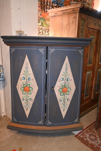 365. Hörnskåp, Frykdalsskåp Dat 1841, senare bemålad H.113.5cn B.101cm Dj.57cm