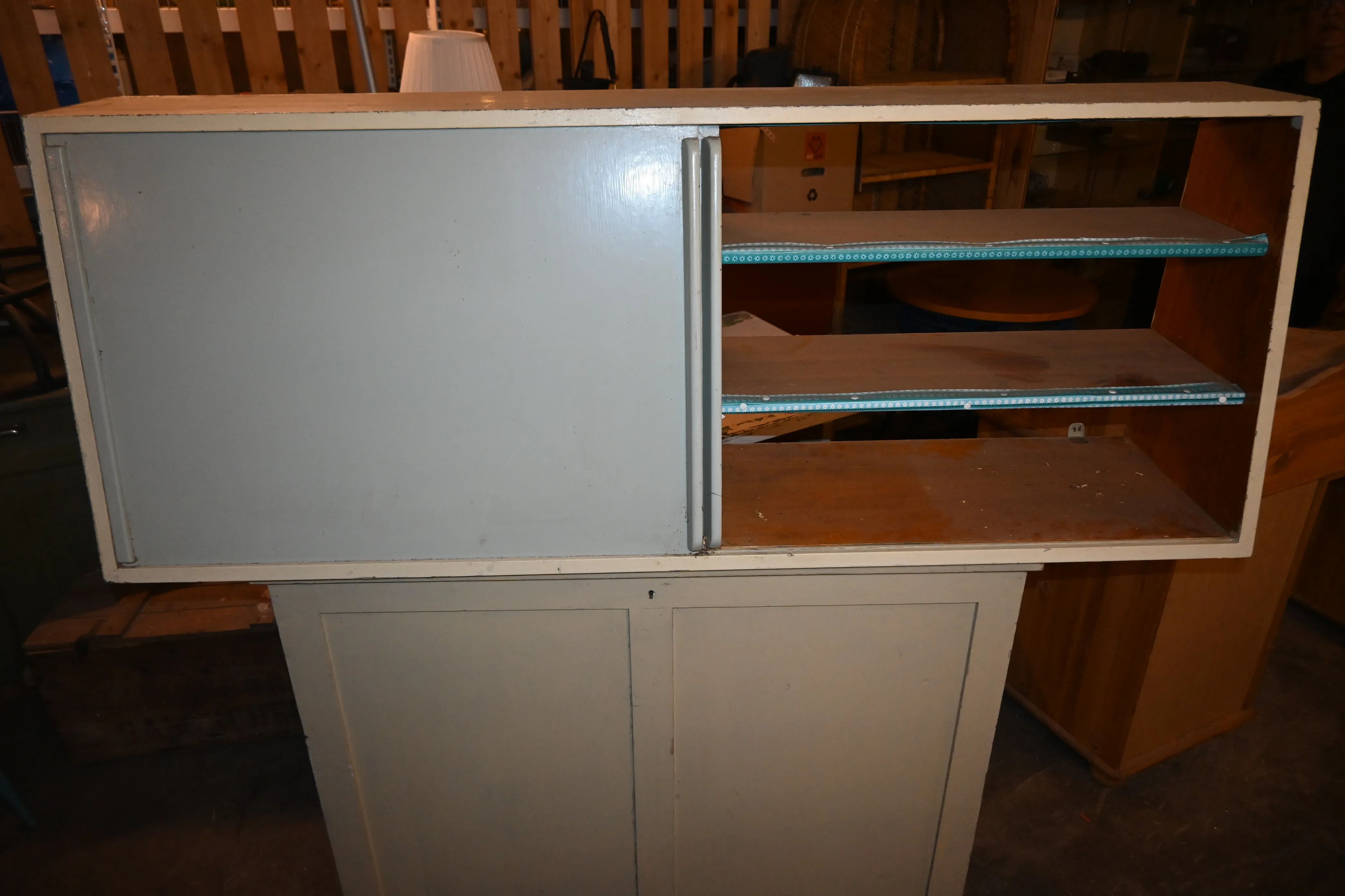 Köksskåpsöverdel med skjutdörrar 1900.talets första del H.59.5cm L.159.5cm B.35 till 22cm