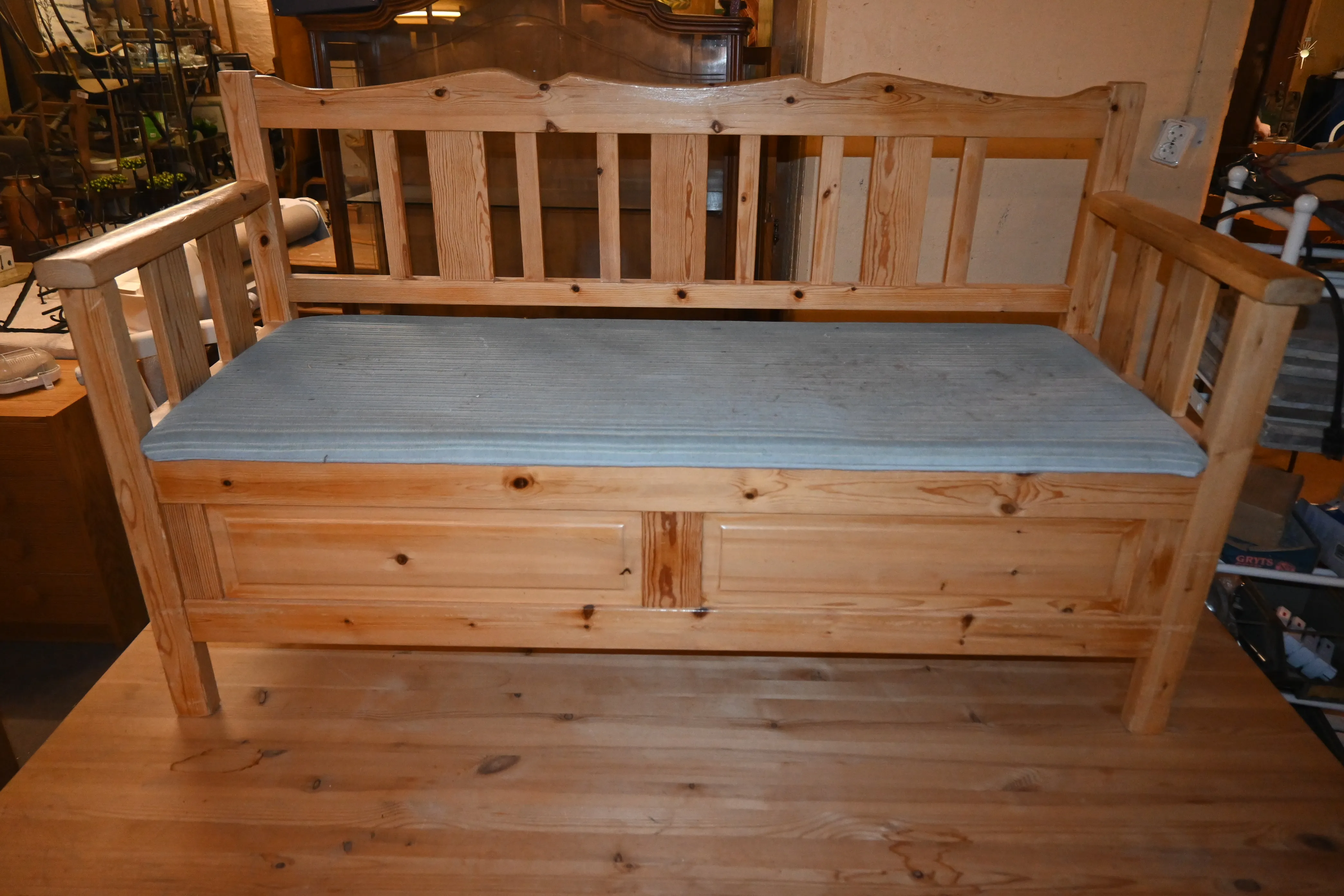 Kökssoffa i fura L.145cm H.84cm (tyg slitage)