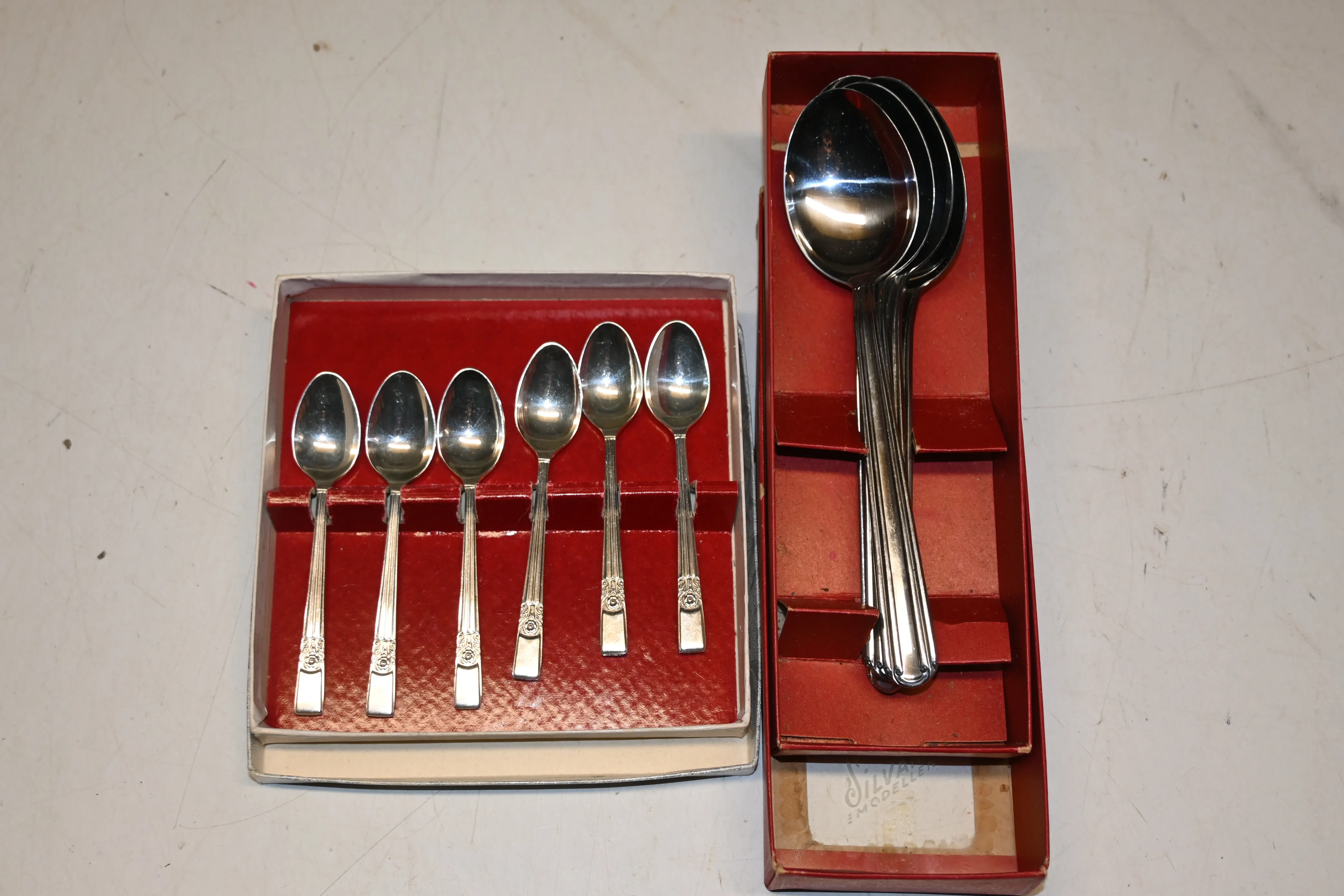 Kaffeskedar 6st silverpläterade "Consort" P.Bros England, matskedar NilsJohan "Silvana" 6st