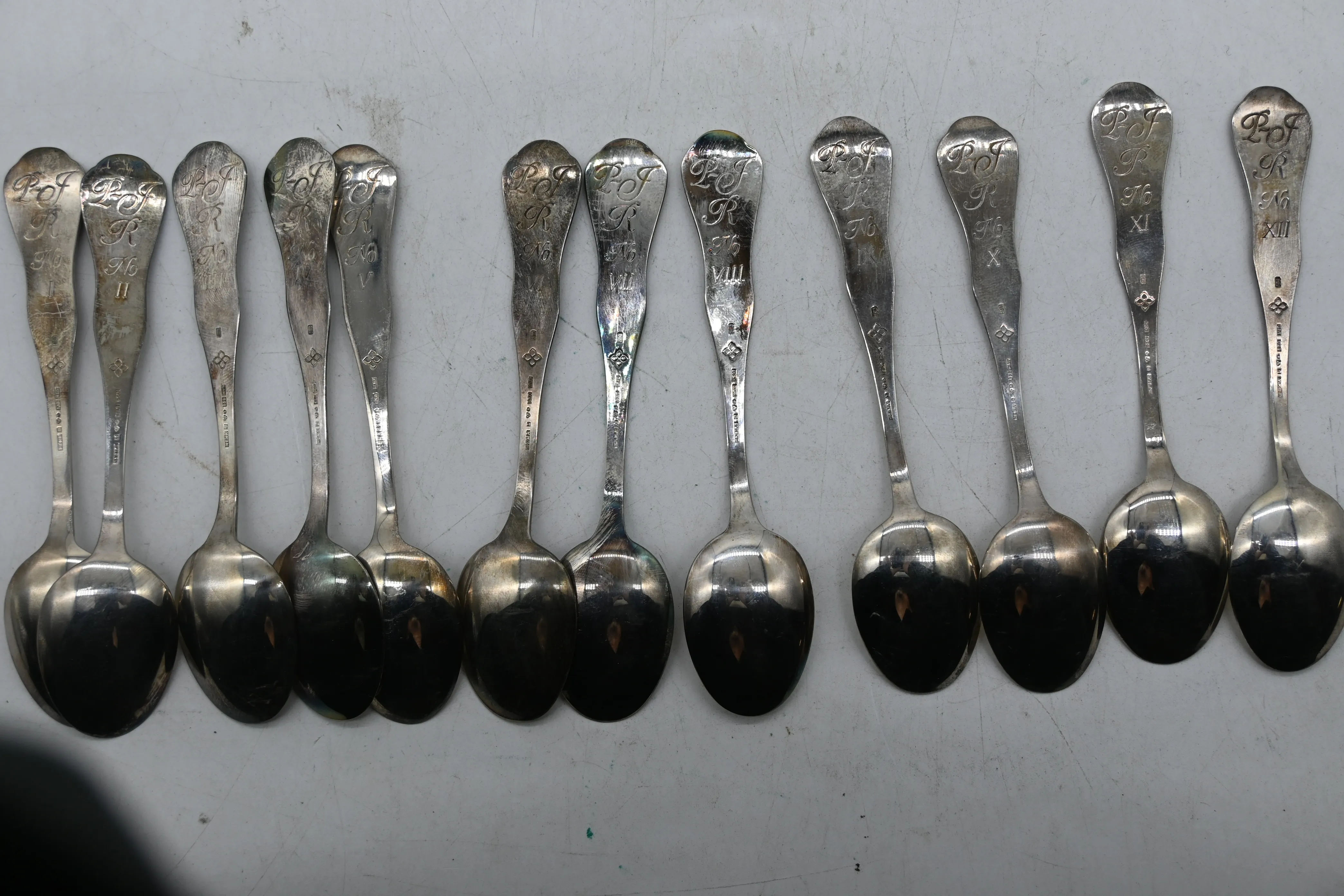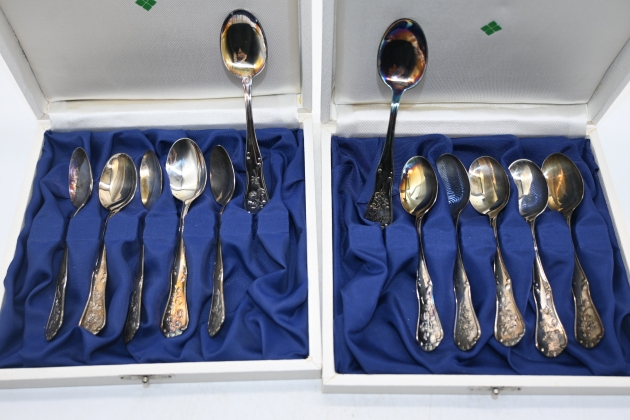 244. Kaffeskedar i silver 12st "Fyrklövern" vikt 156gr