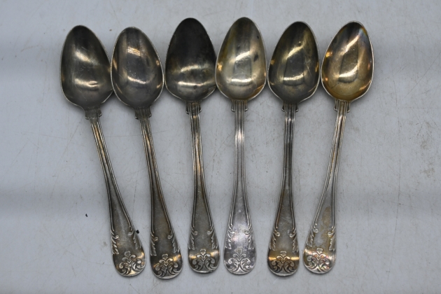 246. Kaffeskedar i silver 6st , Franska Liljan , I6 =1887 vikt 101,4gr