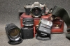 Kamera Chinon CG-5, obj AC Zoom 35-70mm 1:2.7-3. 58o, obj chinon 1:3.8 F=80-200mm multi coated, pentax tele converter, blixt C180 osram