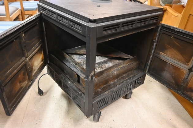 484. Kamin, Wärmo hörnkasett Camino med fläkt 57x57cm H.70cm
