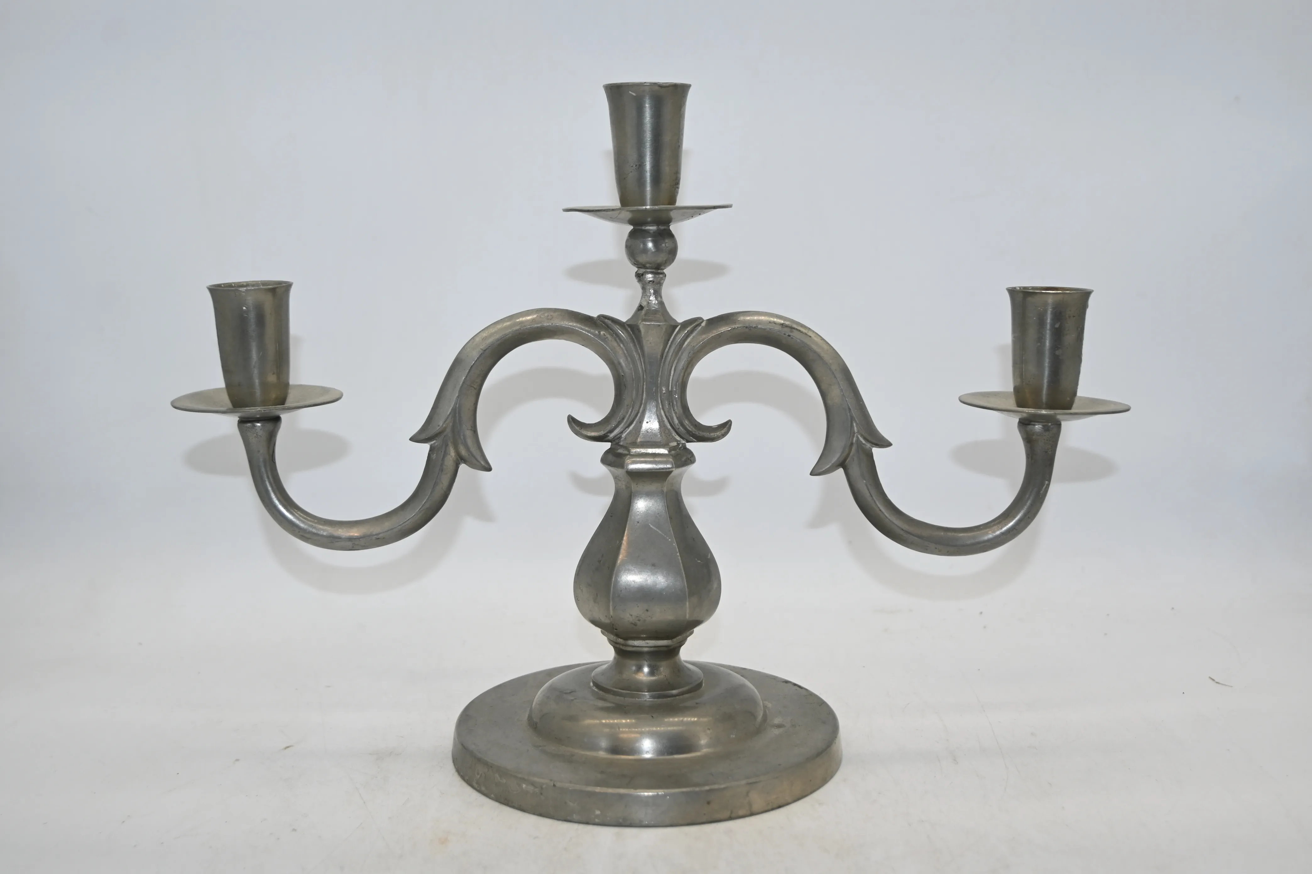 280. Vas i tenn 1929 H:24.5cm+ ljusstake i tenn 1par H.11cm