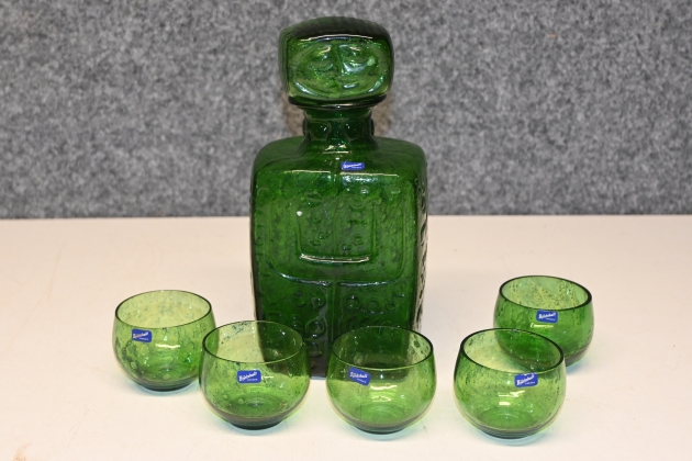 569. Karaff + 5st glas, Björkhults glasbruk av Lars Bergsten H.24cm