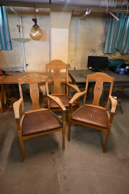 Karmstolar i ek 3st 1900.talets första del (slitage, 1 sits med defekter)
