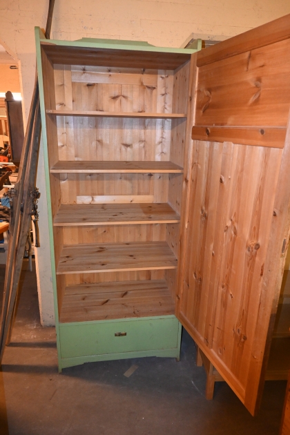 93. Klädskåp 1900.talets fösta del H.220cm B.85cm Dj.53cm (lås saknas, skador förekommer)