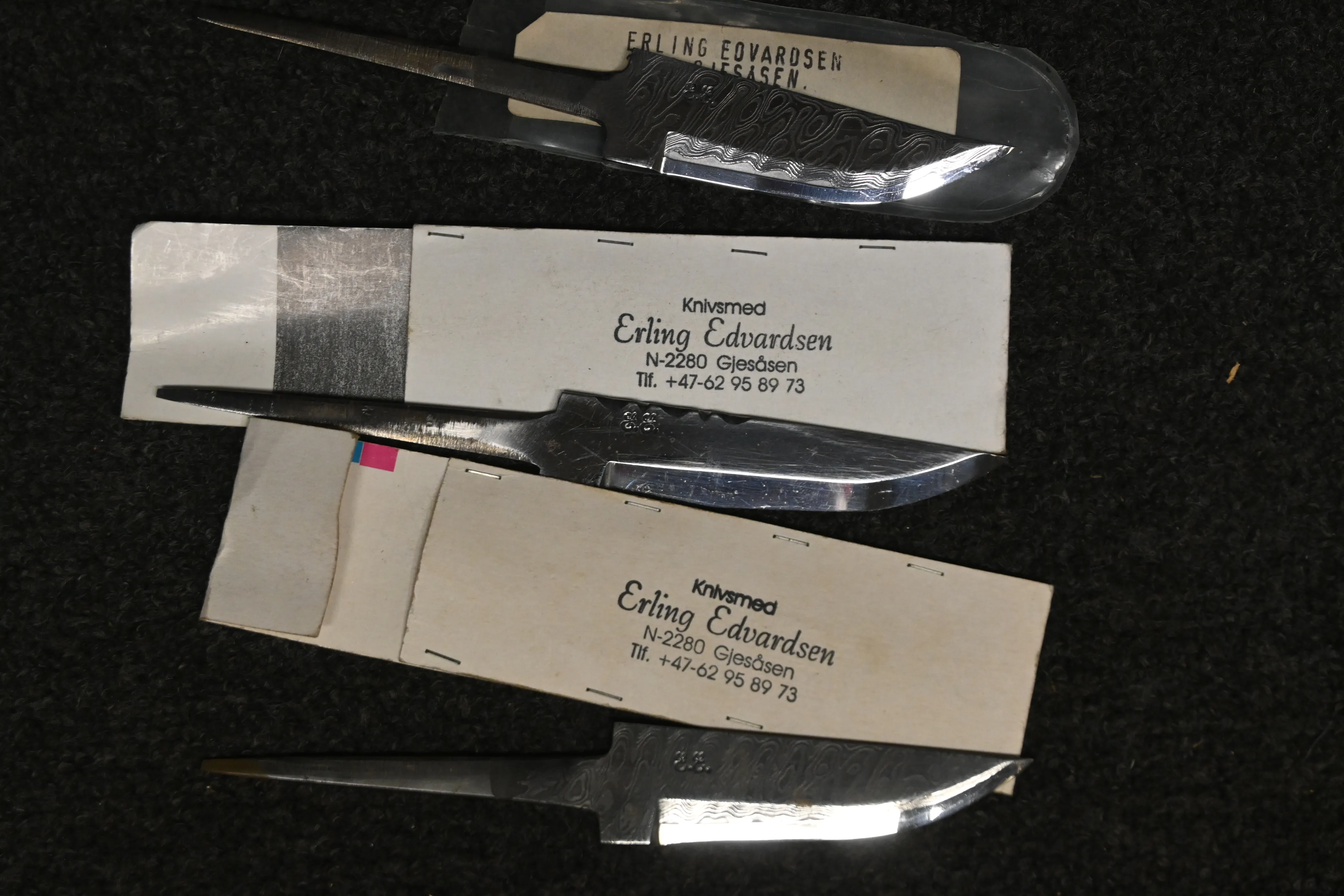 633. Knivblad 27st bland annat en gjord av Erling Edvardsen ,olika storlekar