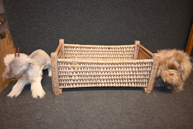 829. Korg äldre modell samt 2st mjukisdjur